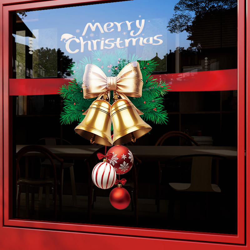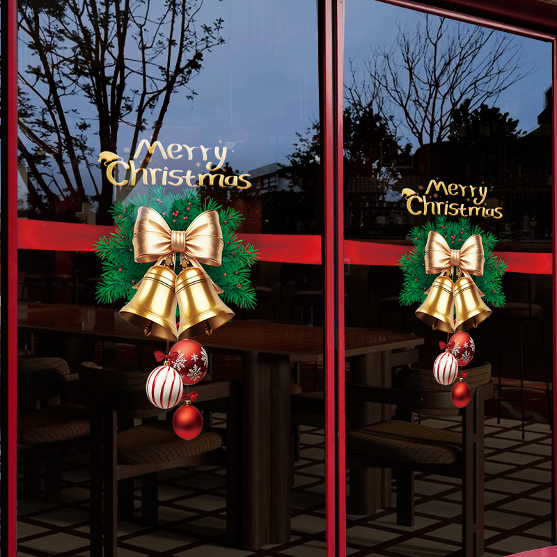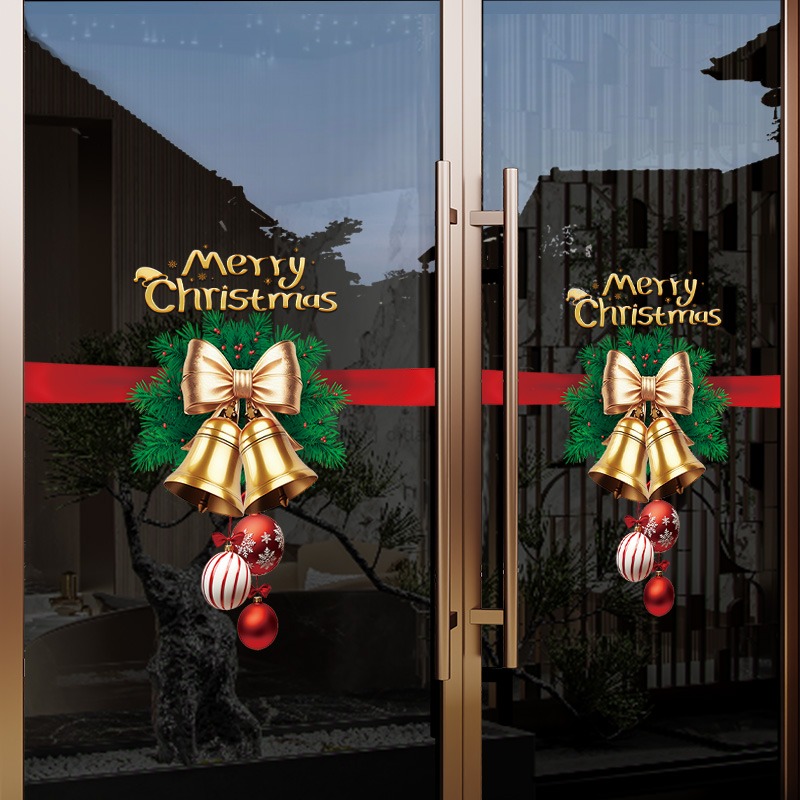 圣诞节装饰橱窗玻璃贴纸圣诞树门贴铃铛2026公司氛围窗花场景布置