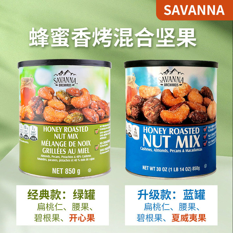 美国进口savanna蜂蜜香烤混合坚果仁腰果夏威夷果开心果零食850g