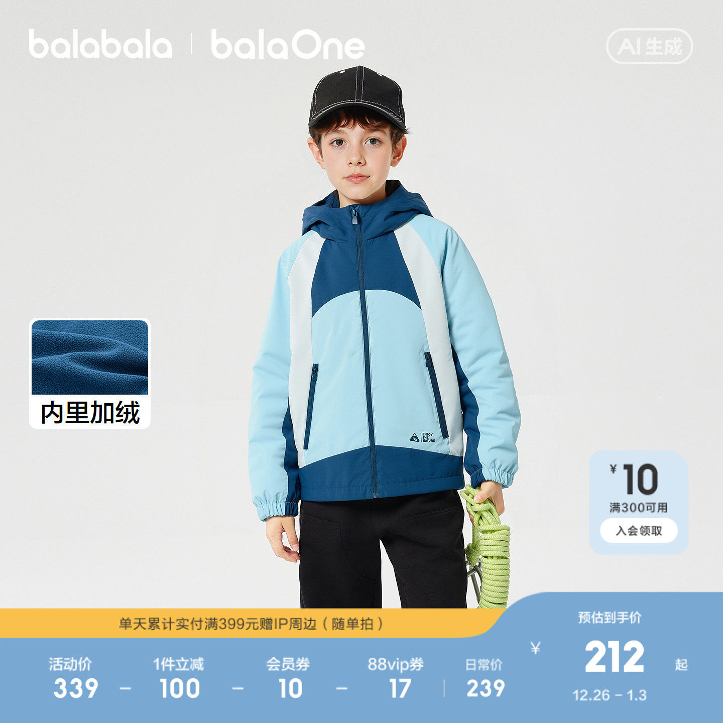 巴拉巴拉童装男童外套儿童上衣2026新款春装加绒防风防泼水透湿潮