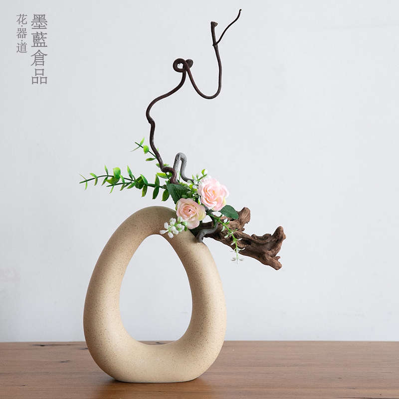 自由花花器陶瓷 日式民宿摆件装饰茶席桌面客厅干花花瓶插花器皿