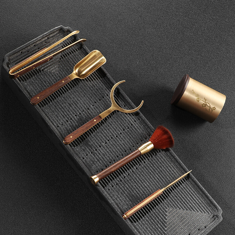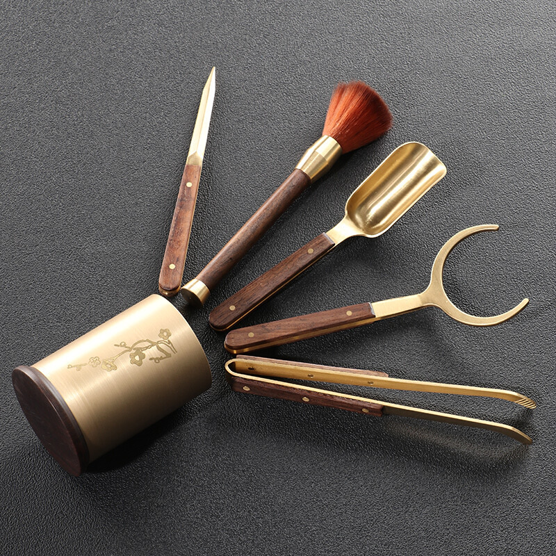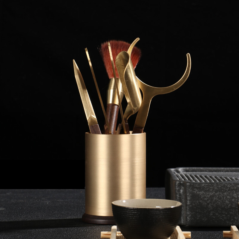 铜木茶道六君子收纳筒制铜实木储物收纳茶筒茶具配件组合茶桶茶道