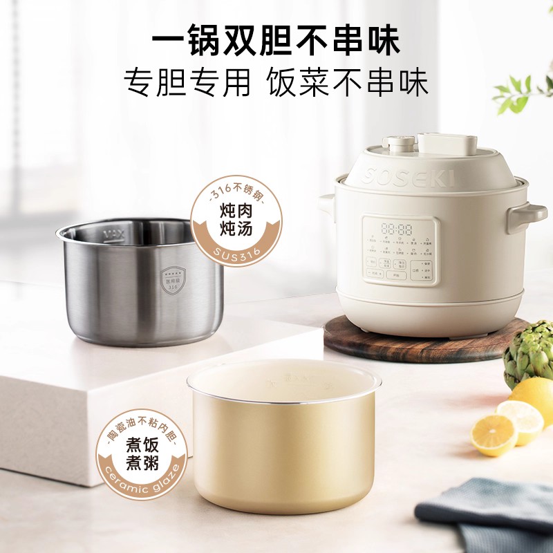 Soseki善思电压力锅家用3L电高压锅电饭煲不锈钢高压锅小型电饭锅