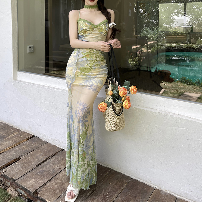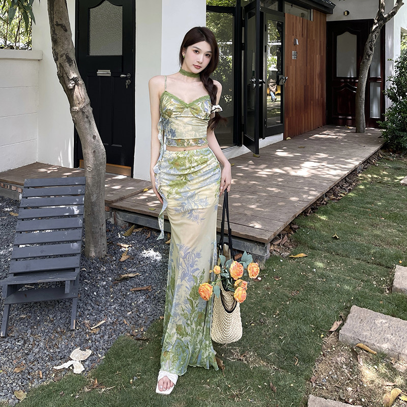 异域风吊带上衣包臀半身裙套装