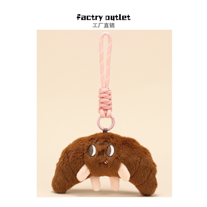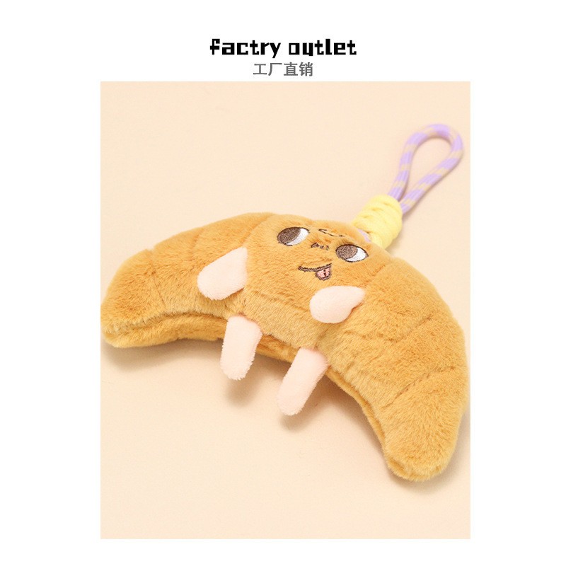网红可爱趣味牛角包挂件面包可颂公仔安抚小玩偶毛绒背包娃娃
