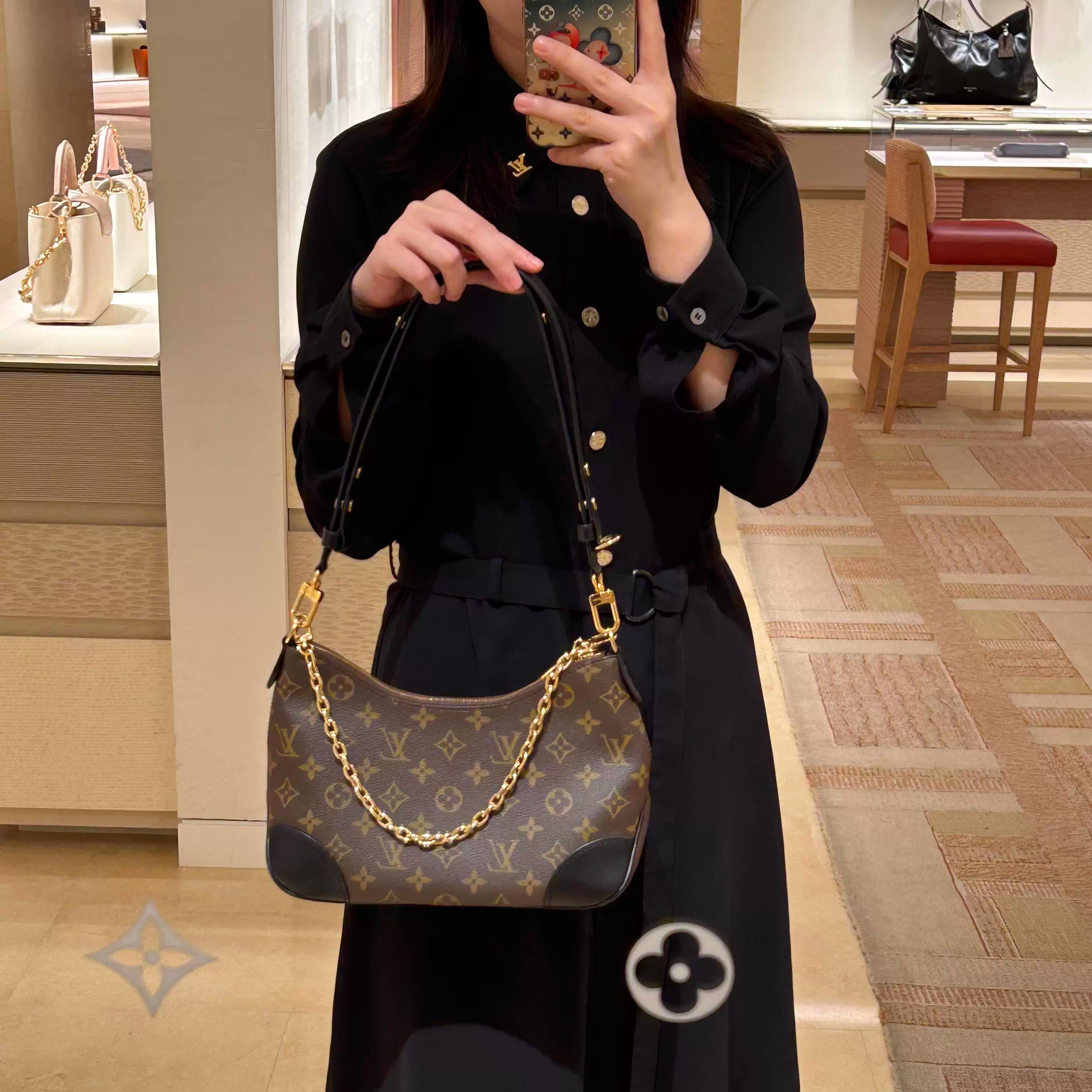 LV路易威登女包 BOULOGNE 黑色牛角包链条单肩斜挎包腋下包M45831