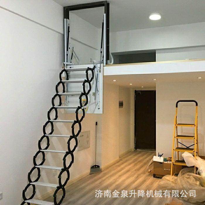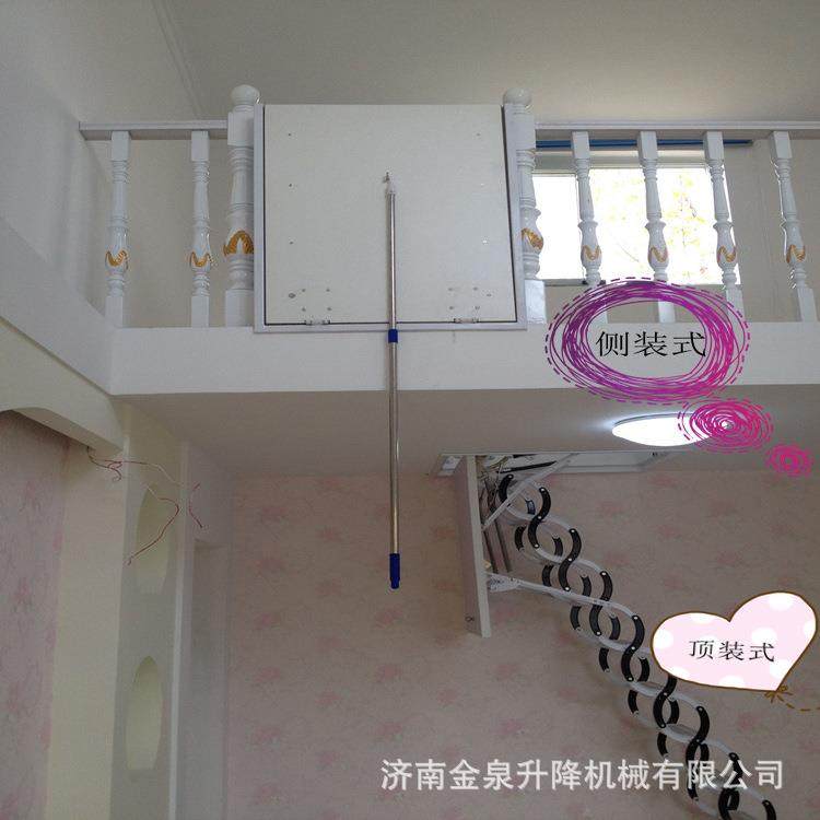 侧装阁楼伸缩楼梯手动隔层楼梯室外平台伸拉升降现货供应伸缩梯