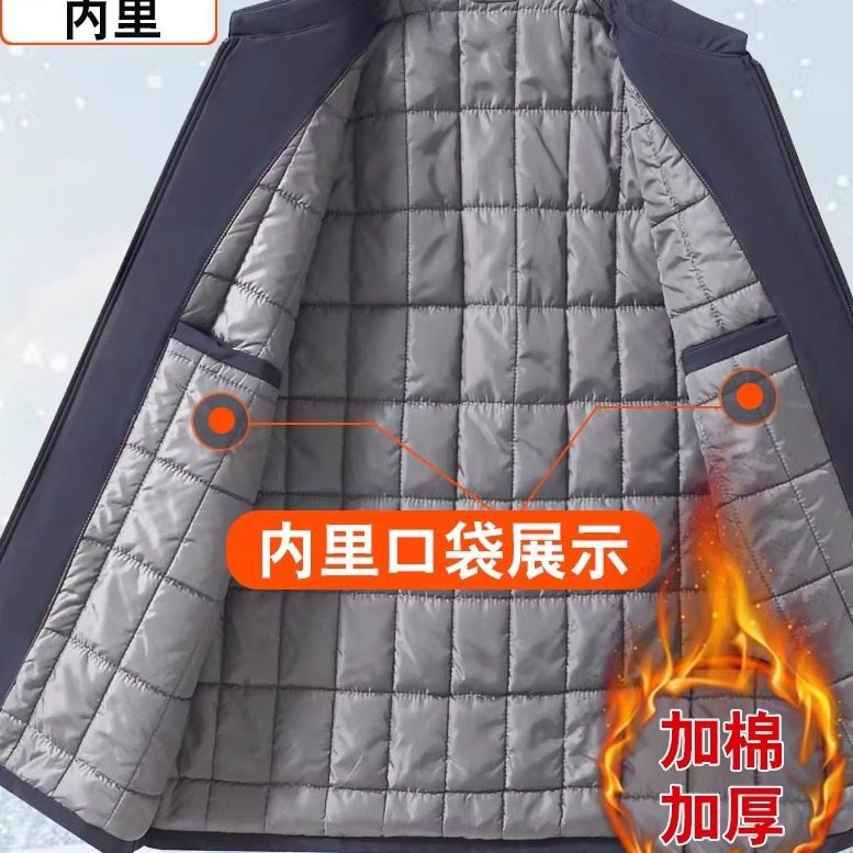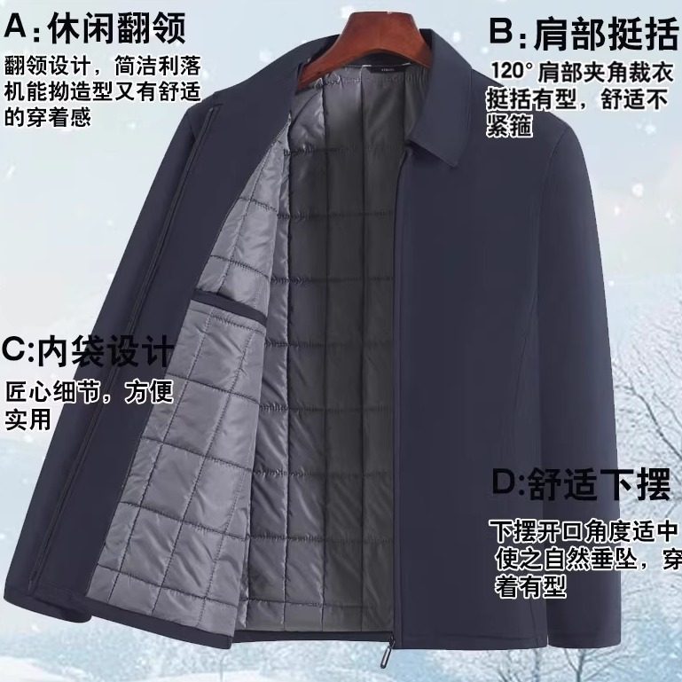 男士夹克翻领行政外套加厚夹棉秋冬季宽松大码中老年人轻便棉袄男