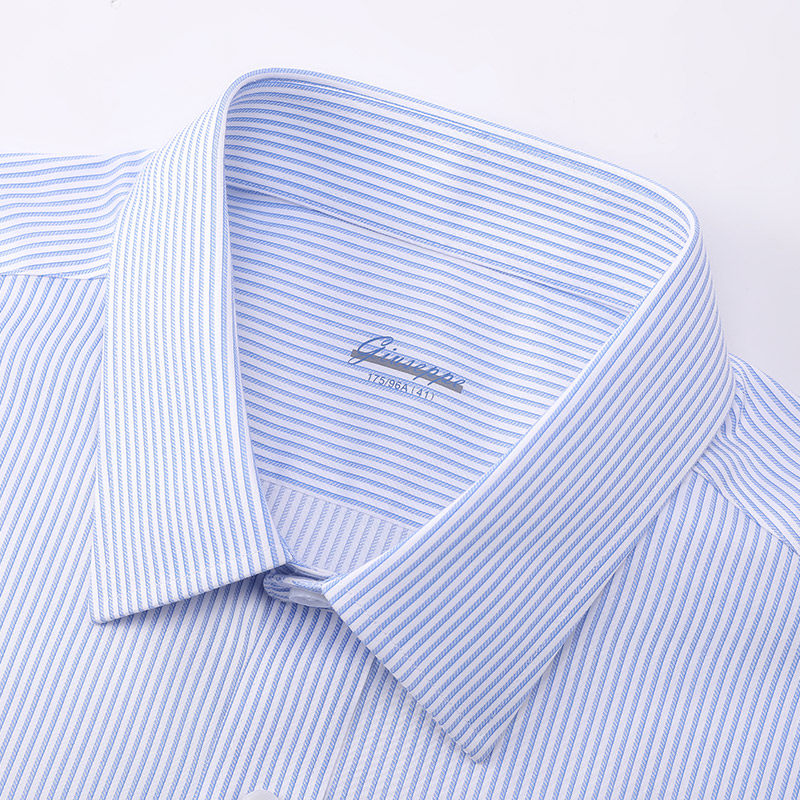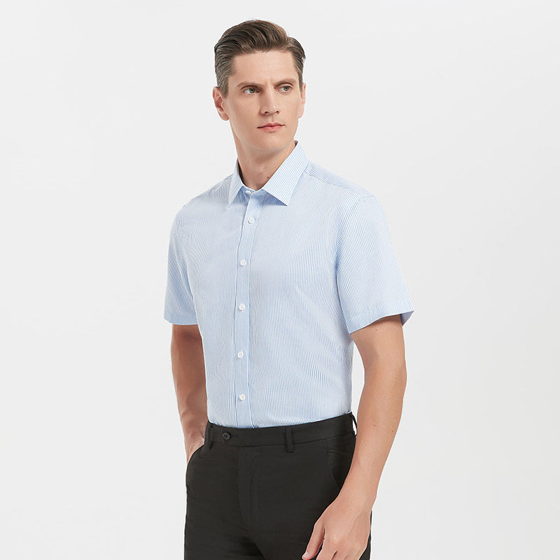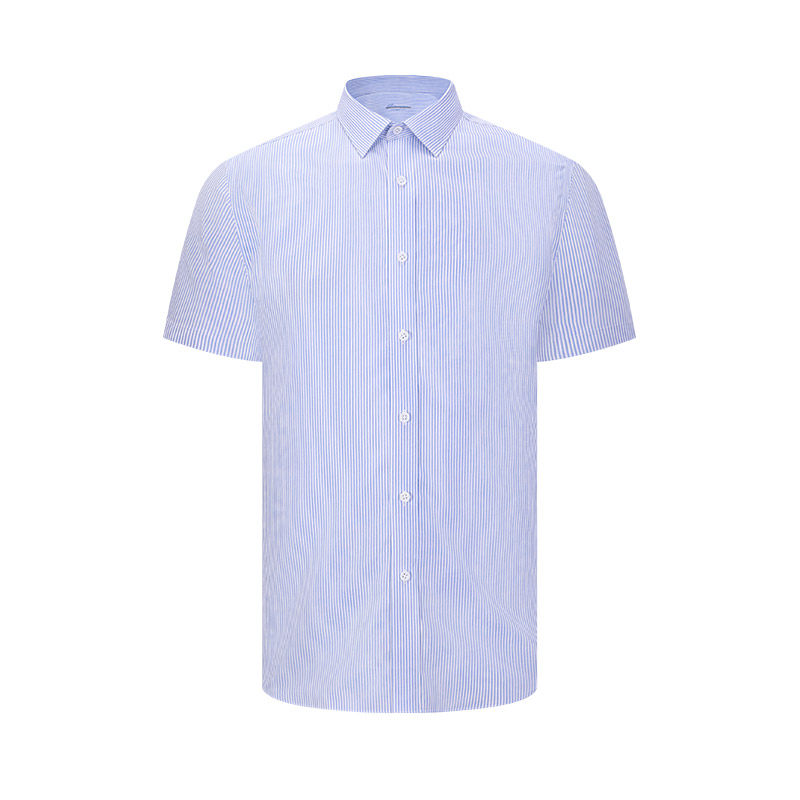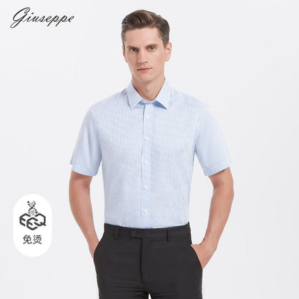 乔治白夏季男士商务免烫短袖衬衫纯棉蓝条纹正装上衣职业装工作服