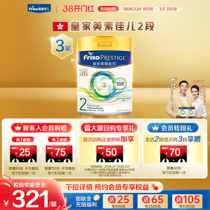 【官方旗舰】皇家美素佳儿港版HMO婴幼儿配方牛奶粉2二段800g*3罐