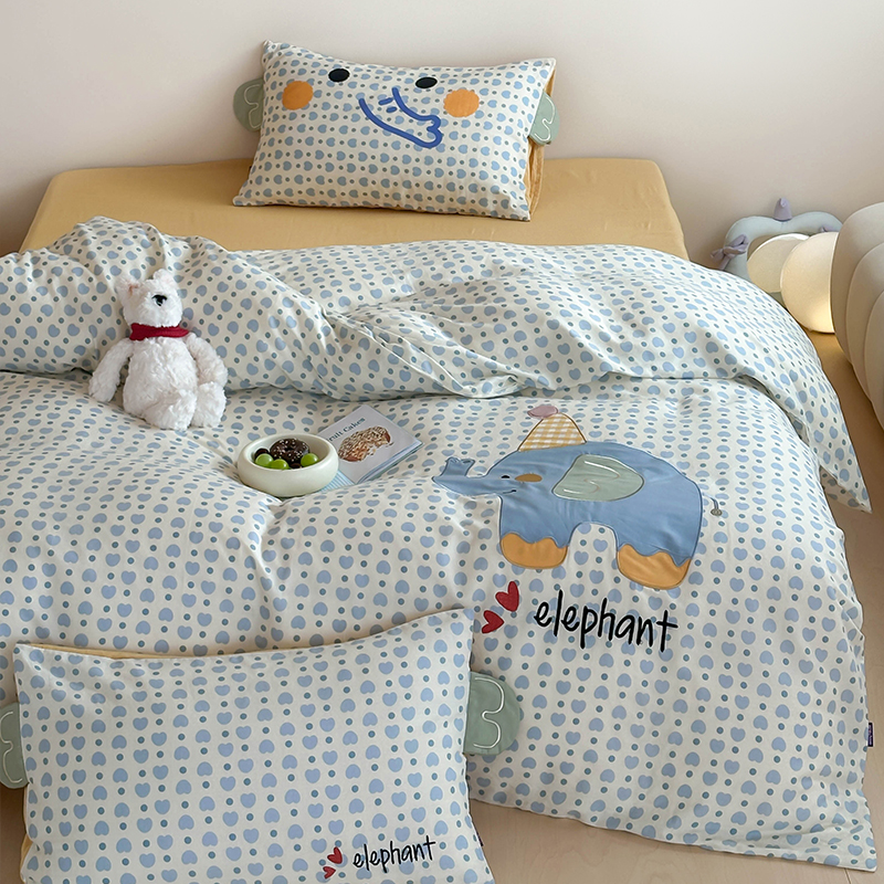 A类纯棉双层纱床单款四件套 可爱小象贴布绣萌趣全棉儿童宿舍床品