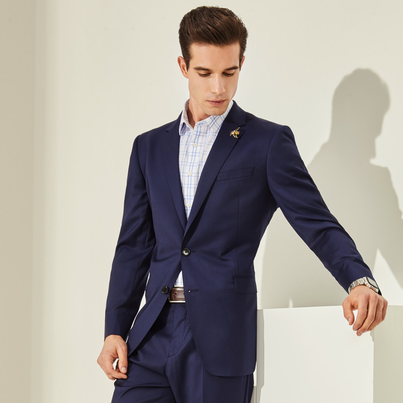 雅戈尔官网西装春男士纯羊毛商务休闲蓝色婚庆西服正装外套