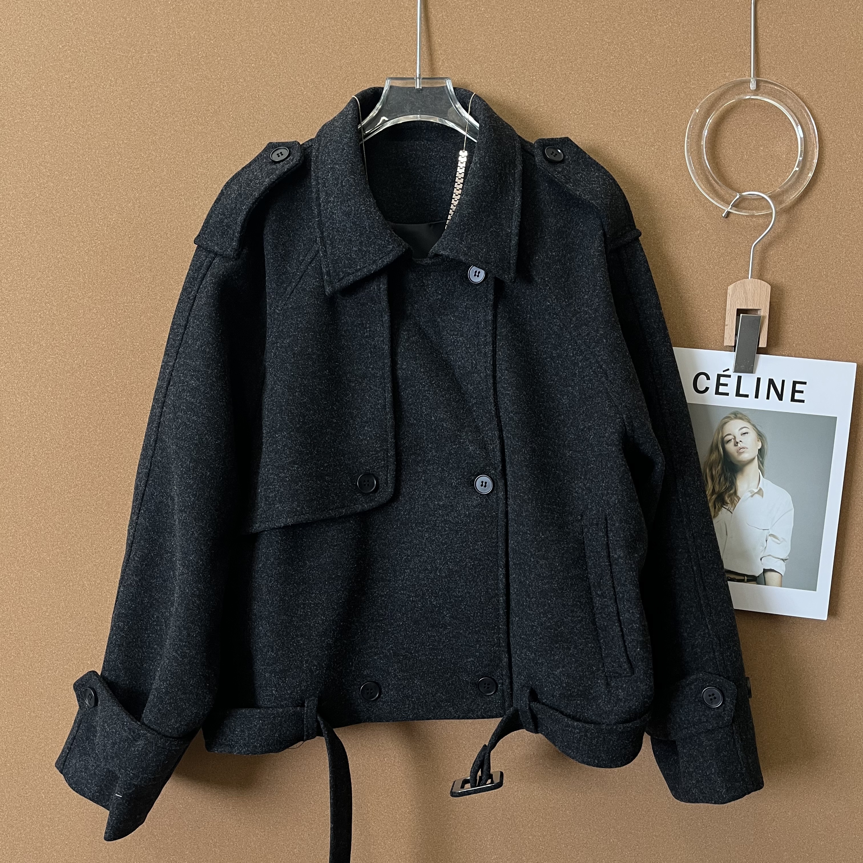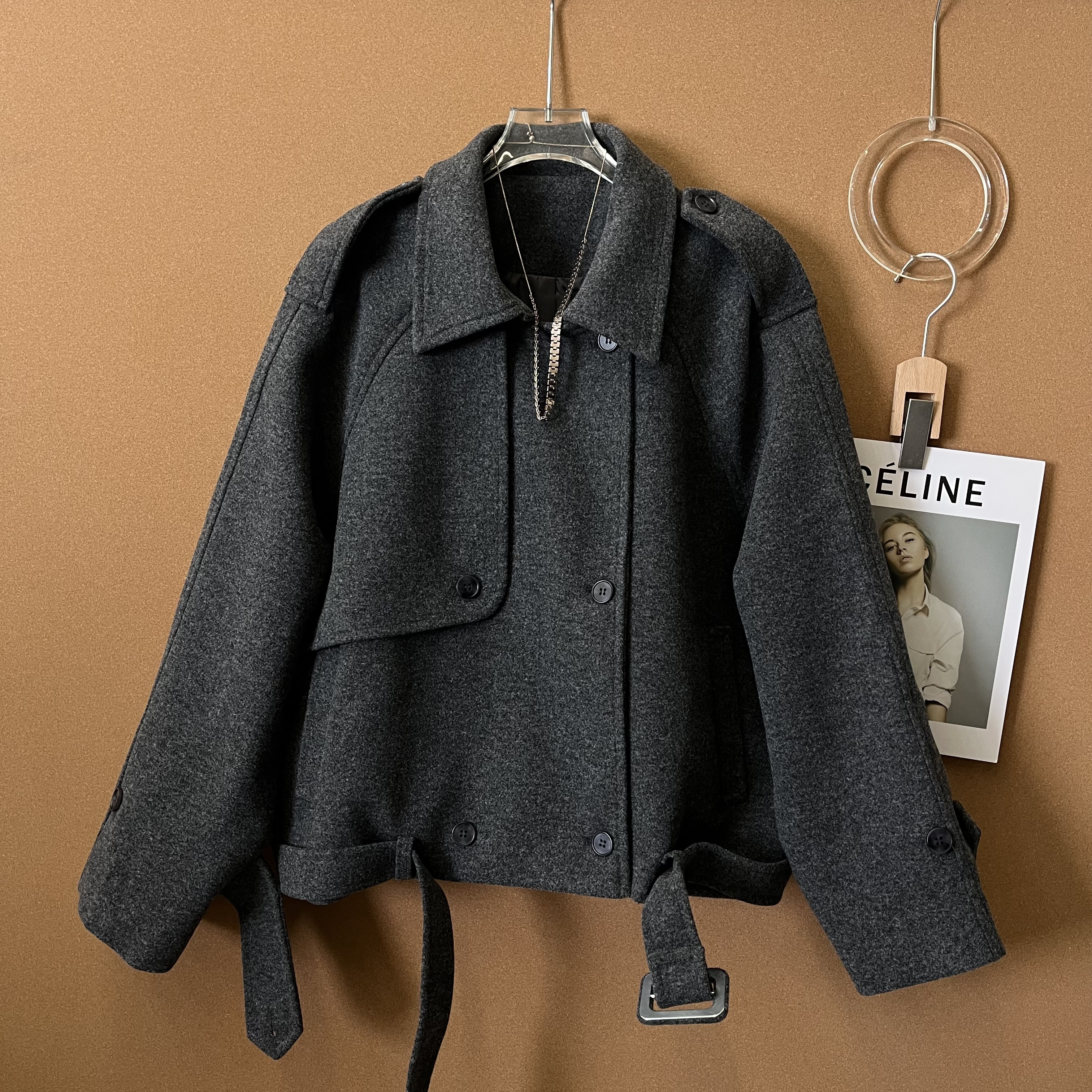 2025秋冬新款高端欧货女装时尚气质翻领双排扣风衣毛呢长袖外套
