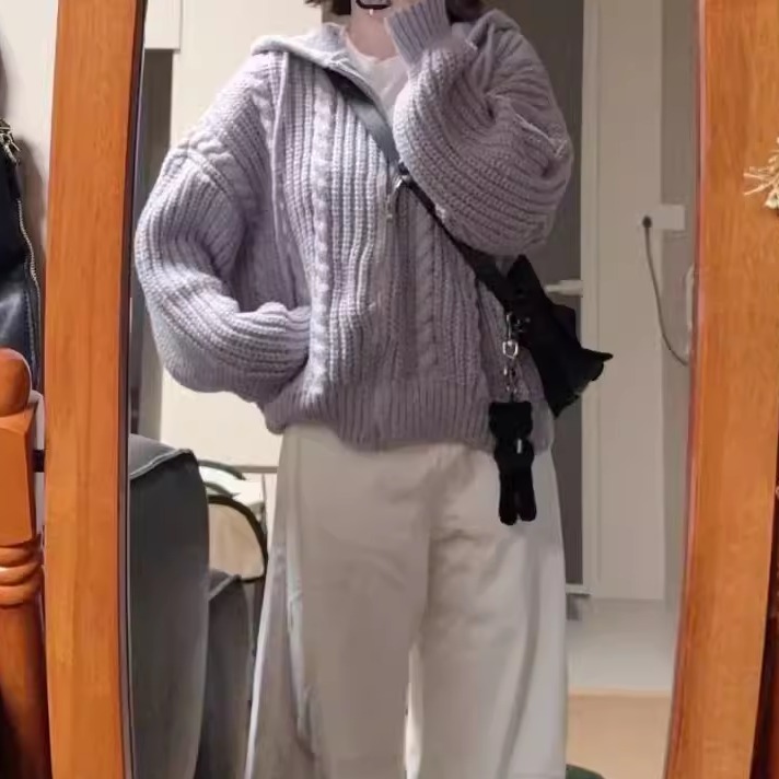 oversize!粗针麻花连帽毛衣外套女秋冬韩版新款宽松针织开衫上衣