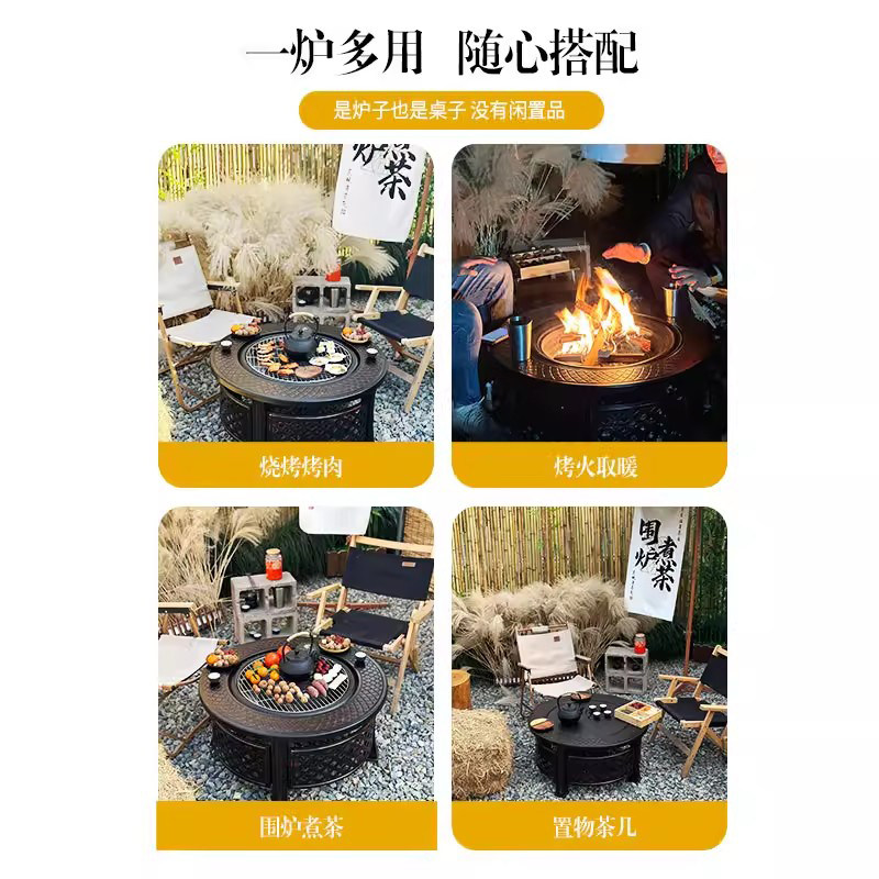 围炉煮茶烤火一体桌家用室内烤火炉套装户外烧烤火锅桌子2025新款