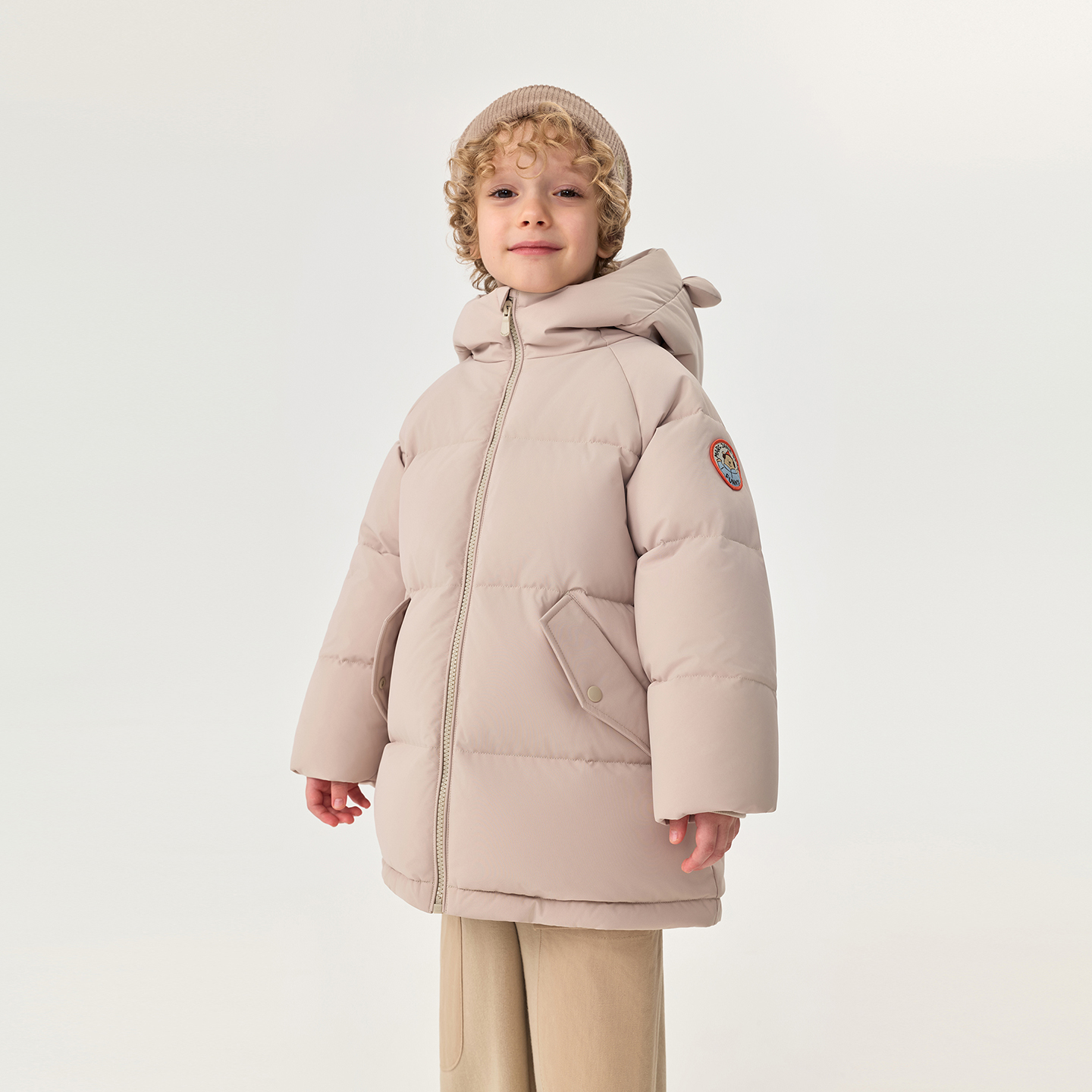 马克珍妮小熊耳朵中长款羽绒服
