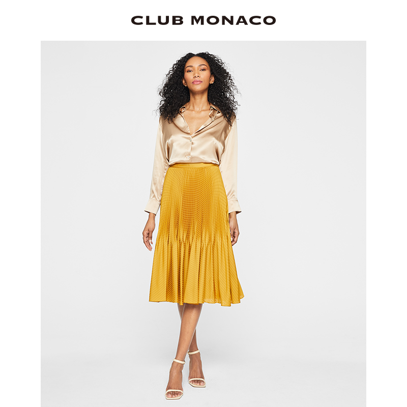 CLUB MONACO女装浪漫优雅高腰A字百褶底摆中长款半身裙