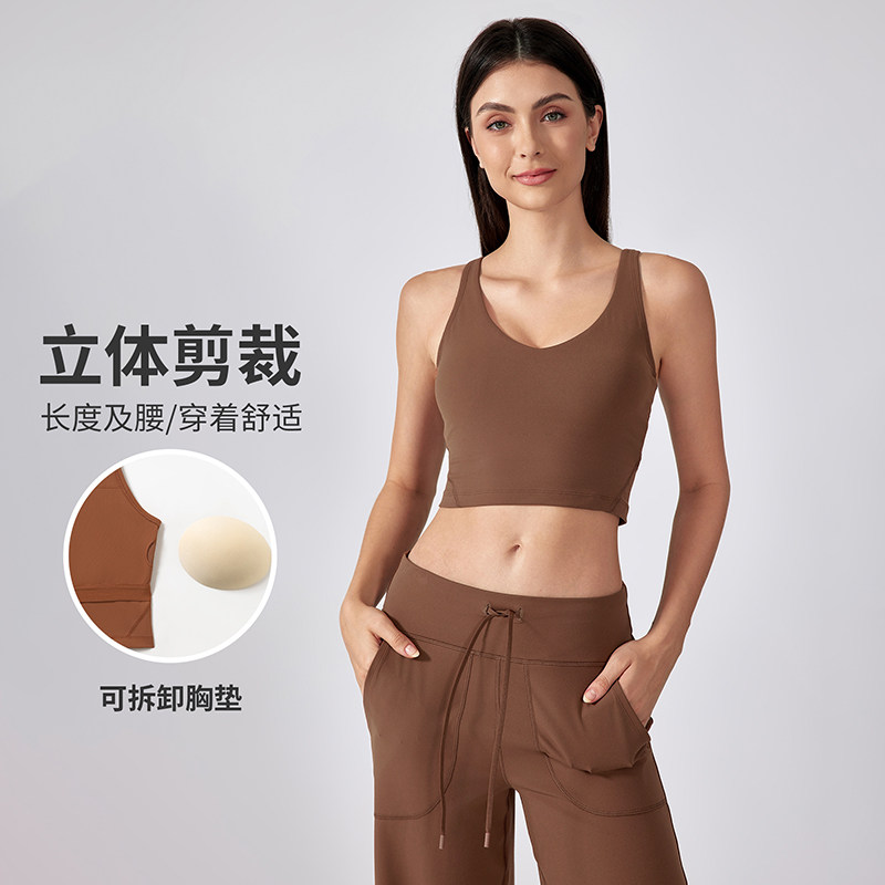 瑜伽背心女带胸垫健身文胸一体式运动内衣跑步防震美背心