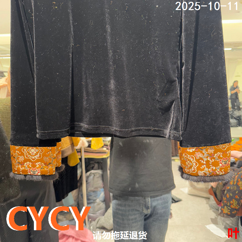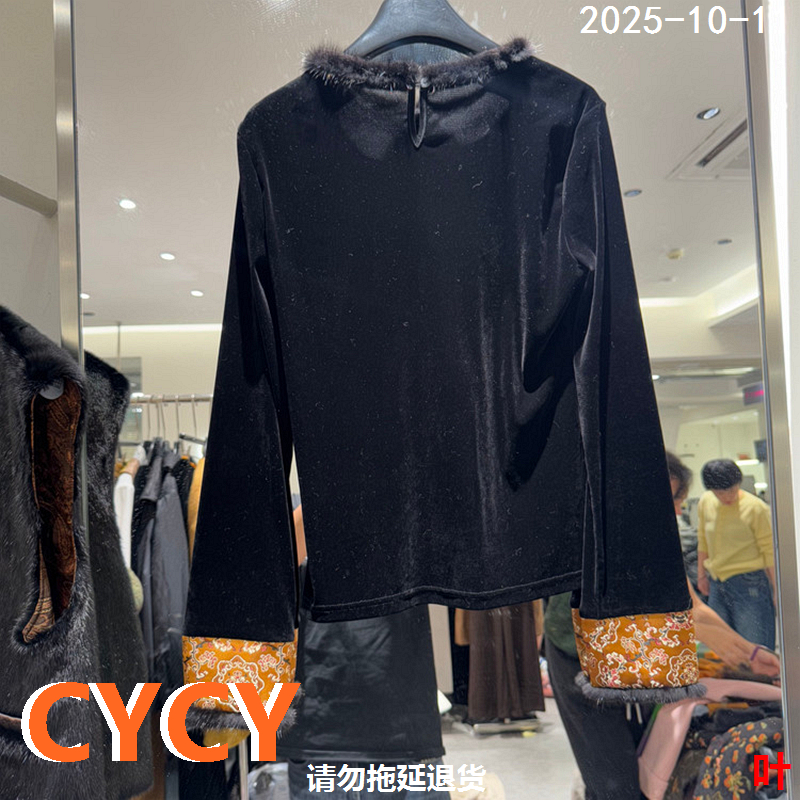欧洲站2025秋冬新款百搭圆领拼接毛毛真丝丝绒长袖上衣女潮89037