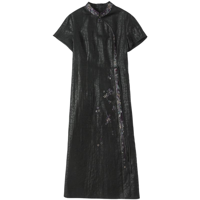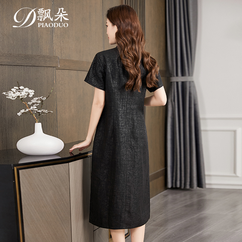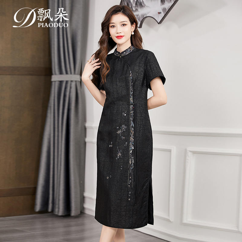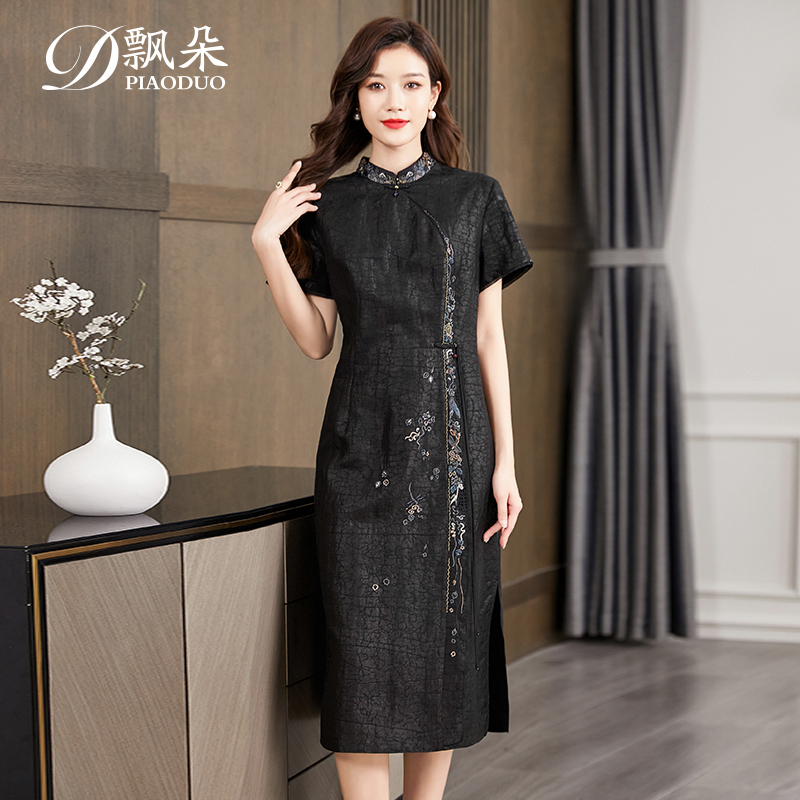 飘朵中式香云纱真丝连衣裙女中年妈妈2025夏季新款桑蚕丝改良旗袍