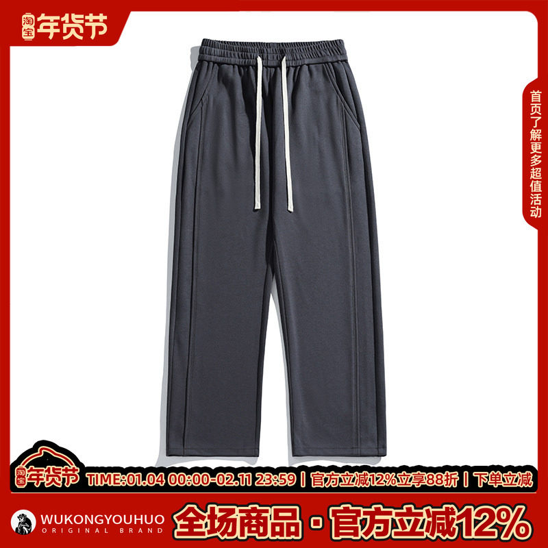 悟空有货美式高街纯色抽绳直筒卫裤男秋冬宽松情侣男士运动休闲裤