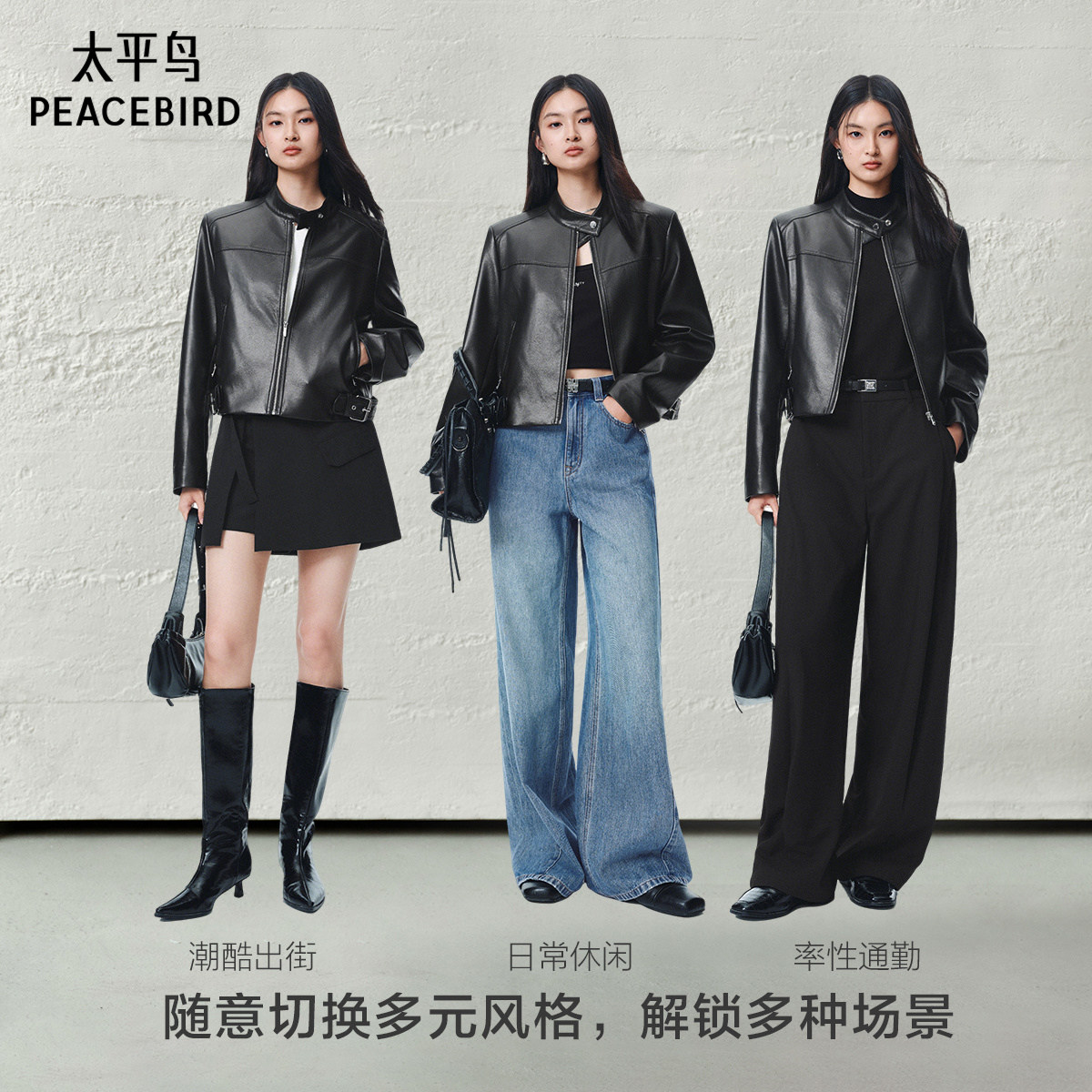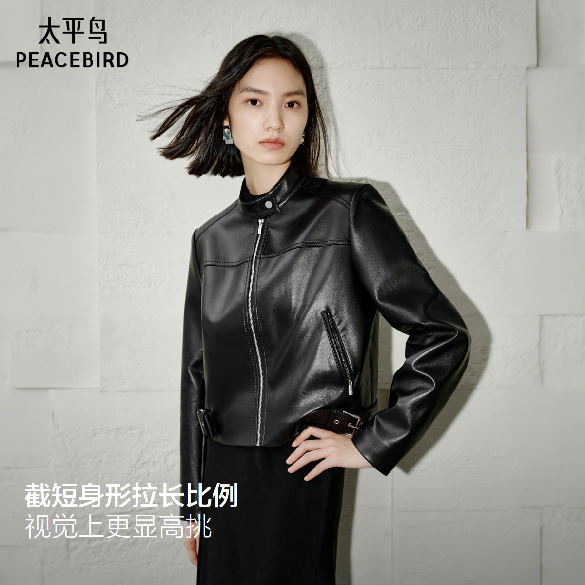 张婧仪同款 太平鸟黑天使PU外套25皮衣机车风短外套女A1BBF3417