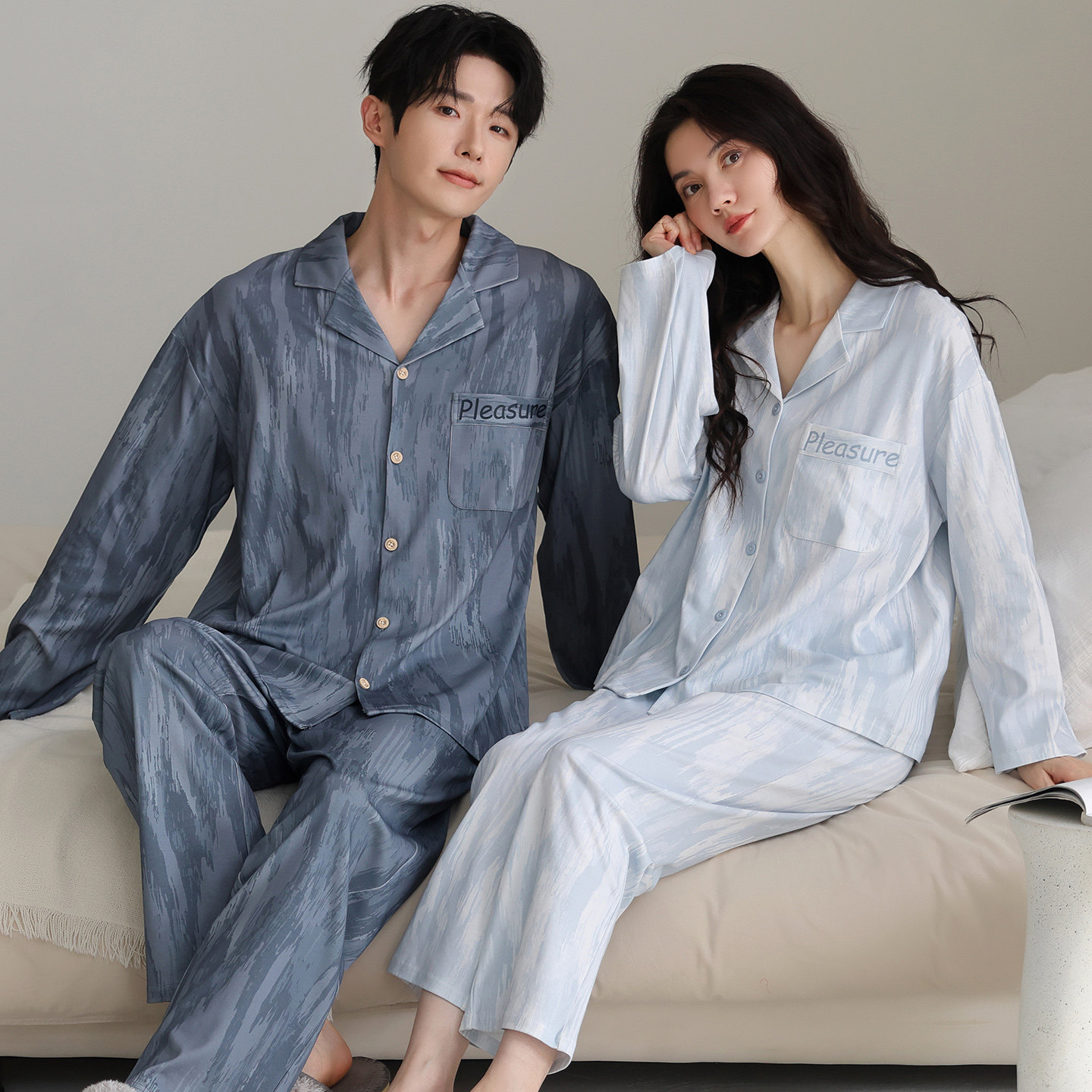 都市丽人纯棉情侣睡衣2026新款春秋长袖卡通家居服套装男女可外穿