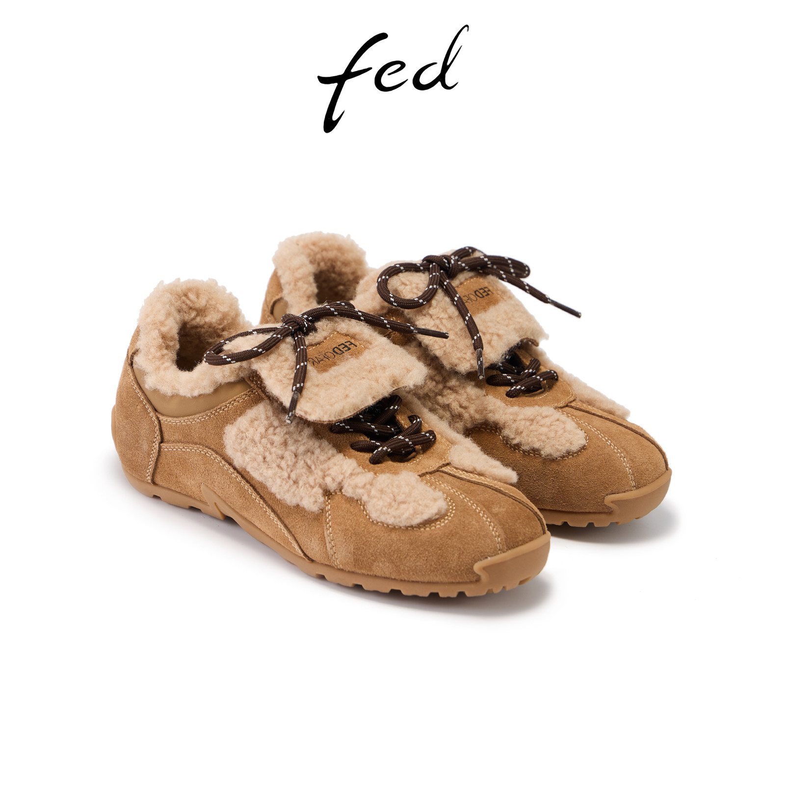 fed翻盖毛毛鞋冬季新款女鞋加绒德训鞋轻便休闲鞋女S1118-YAB029