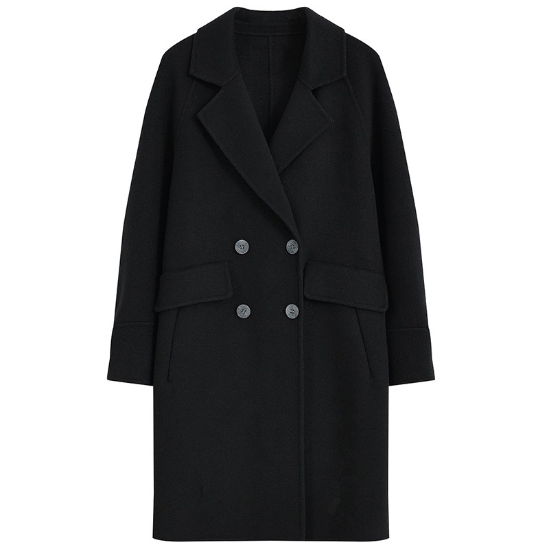 深灰小个子西装领中长款毛呢外套