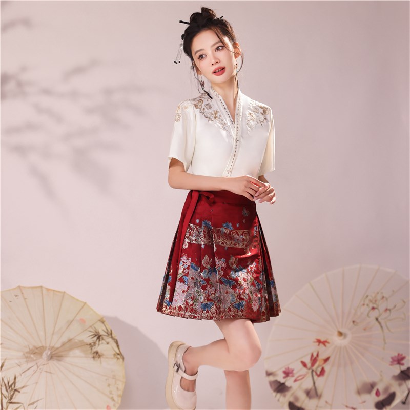 2025新款小个子改良女新中式日常短马面裙仿妆花织金汉元素中国风