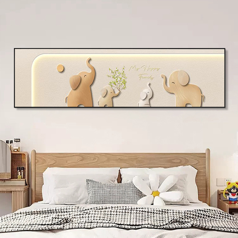 现代轻奢卧室儿童房装饰画北欧动物男孩女孩床头大象挂画房间公寓