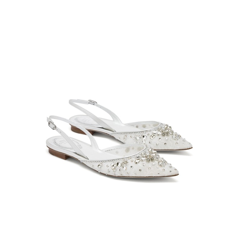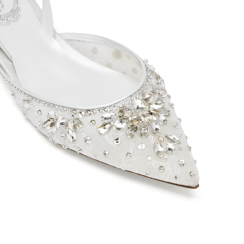 【秋冬新品】RENE CAOVILLA HINA系列白色尖头水钻女士平底凉鞋