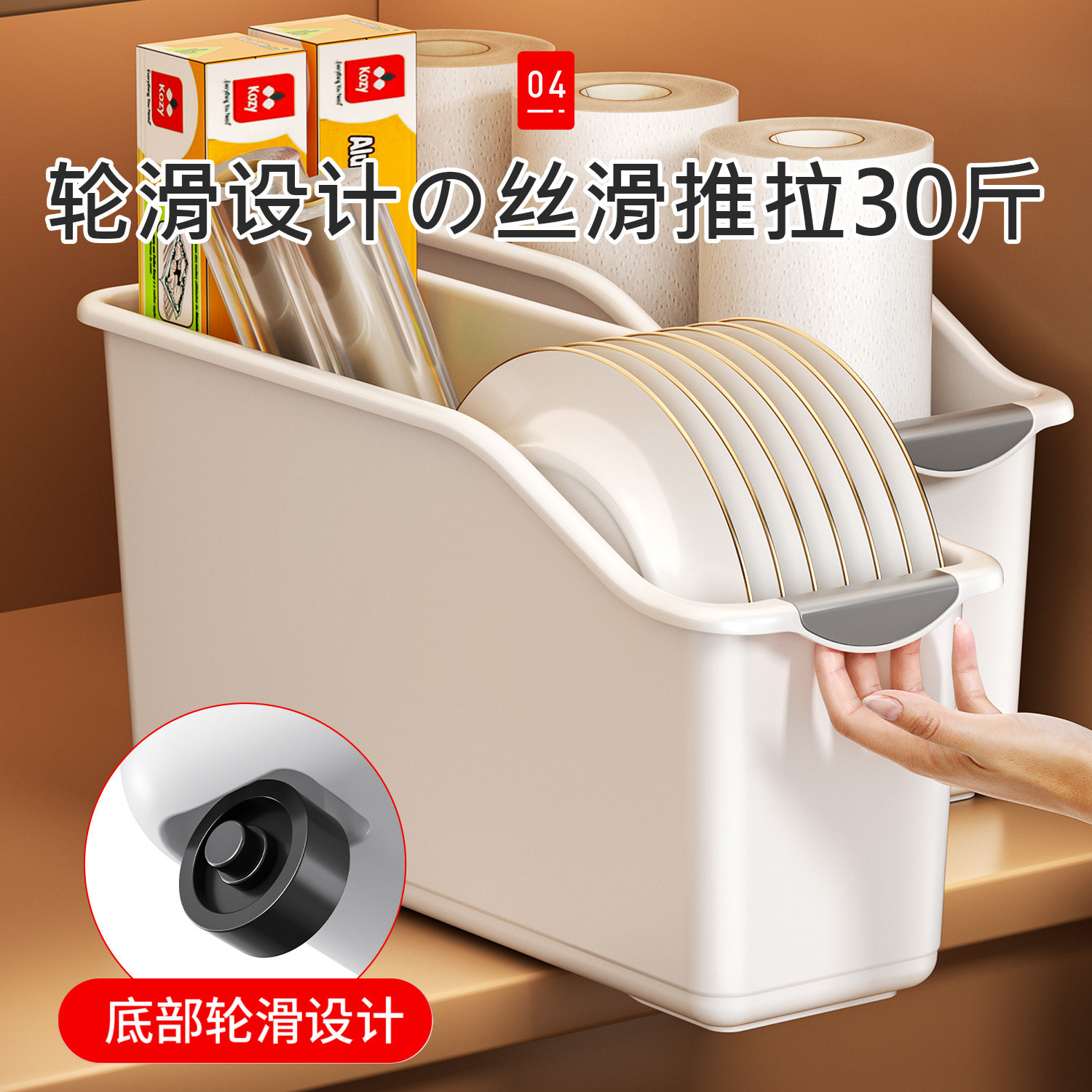 厨房橱柜收纳盒带滑轮整理盒