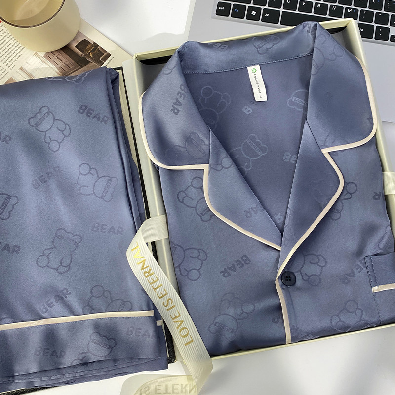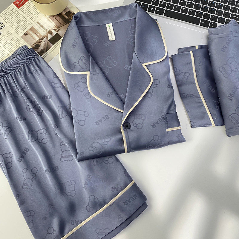 猫人冰丝睡衣男款夏季真丝短袖长裤三件套家居服送爸爸男友礼盒装