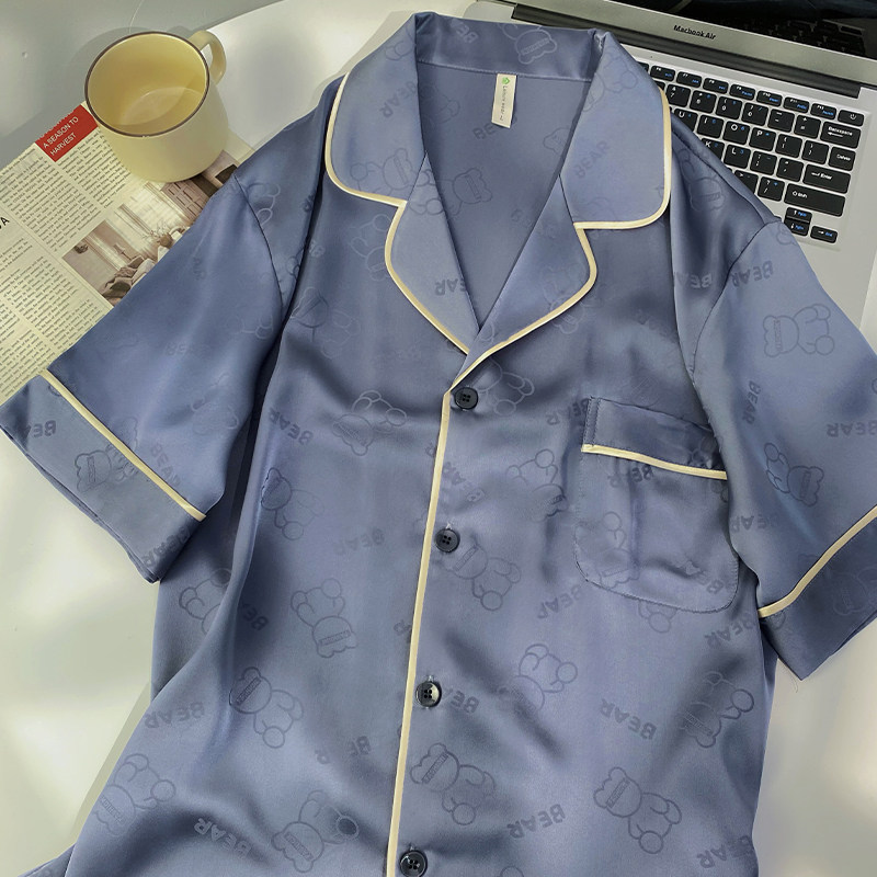 猫人冰丝睡衣男款夏季真丝短袖
