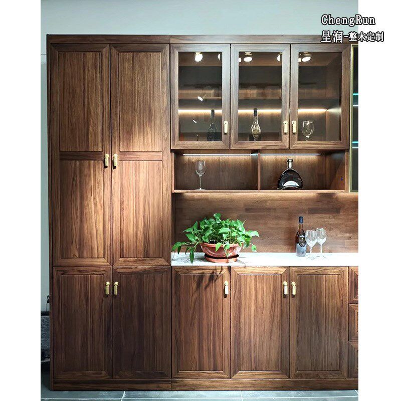 新中式客厅靠墙全实木酒柜t定制乌金木整体衣柜全屋定制柜工厂直