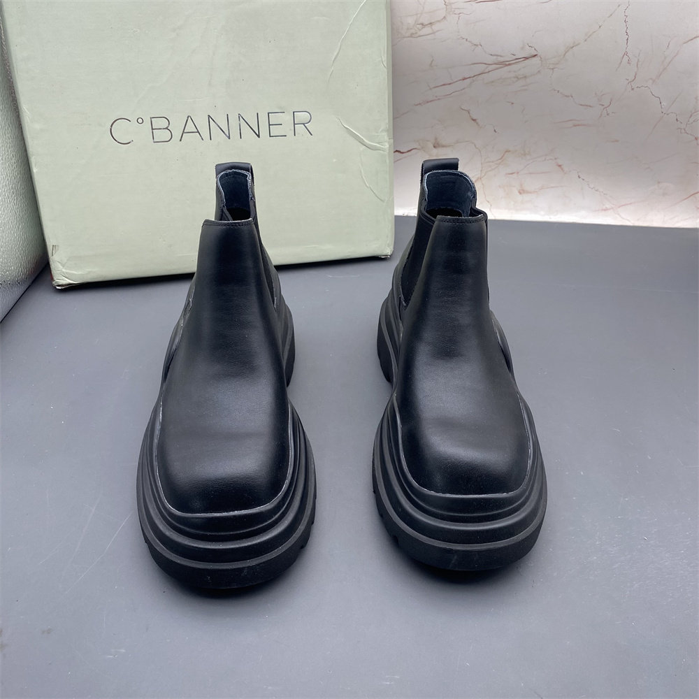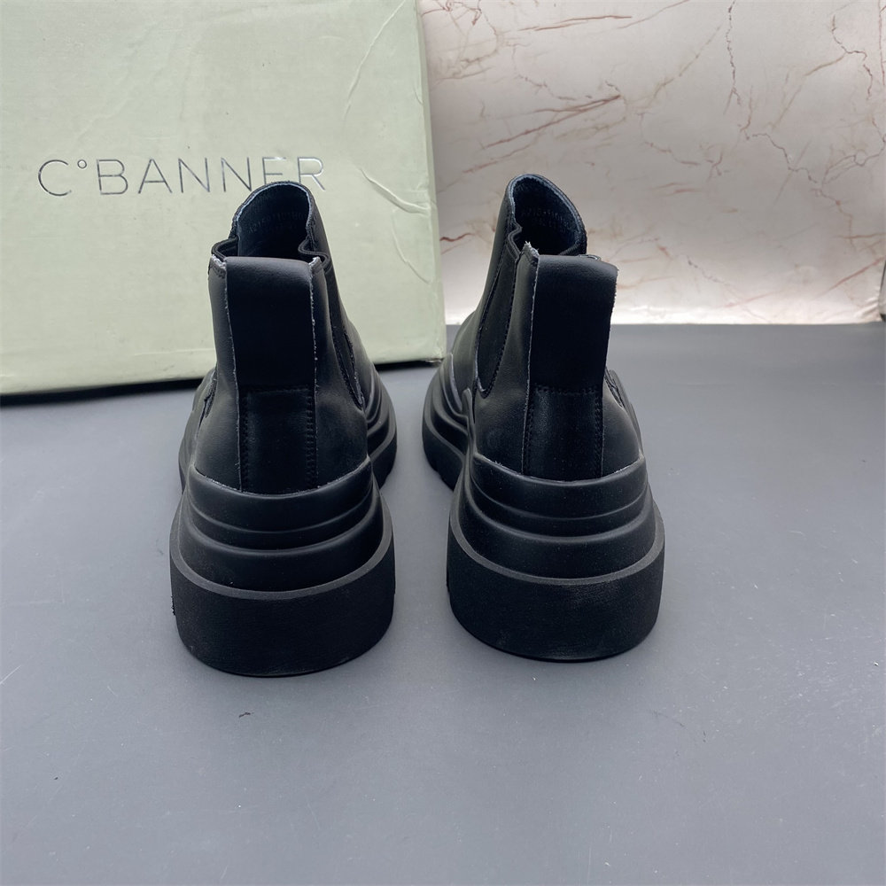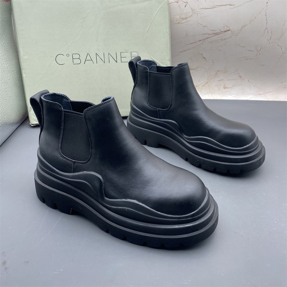 C.BANNER千百度撤柜牛皮女鞋圆头松糕底厚底防滑休闲时尚套筒短靴