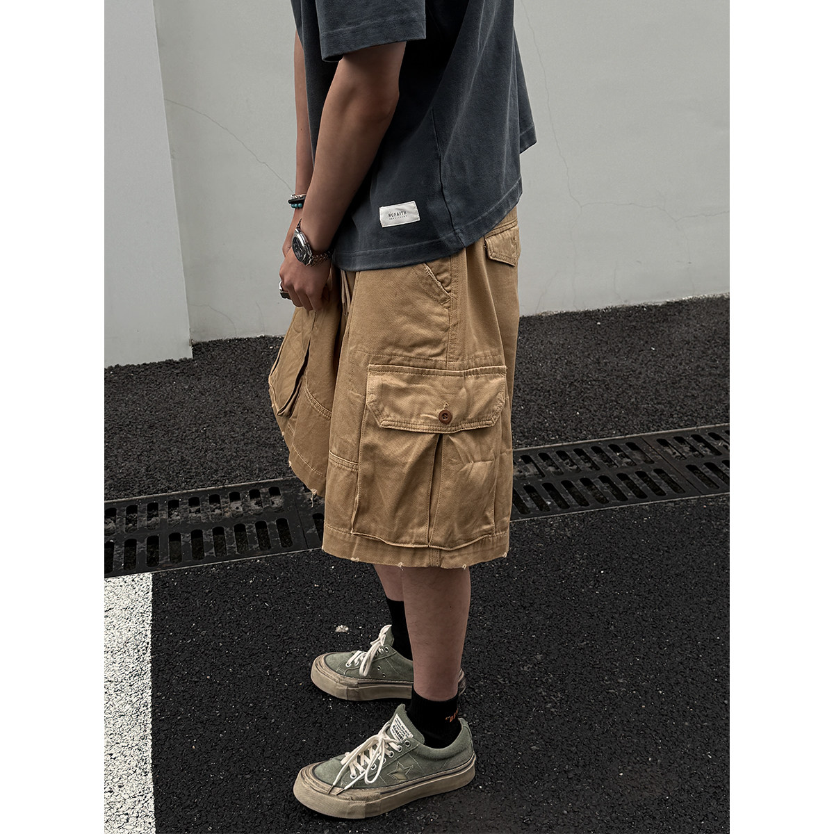 美式复古水洗做旧大口袋工装短裤男手工破坏挺阔有型质感五分中裤