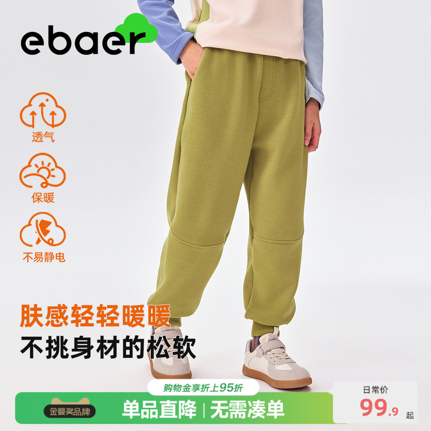 ebaer儿童加绒加厚裤子2025冬装新款男童抑菌运动休闲裤女童长裤