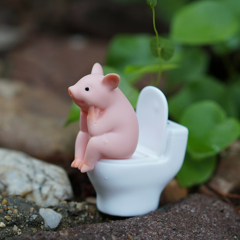 可爱小猪马桶摆件仿真动物猪猪模型精致上卫生间拉屎搭子装饰摆件