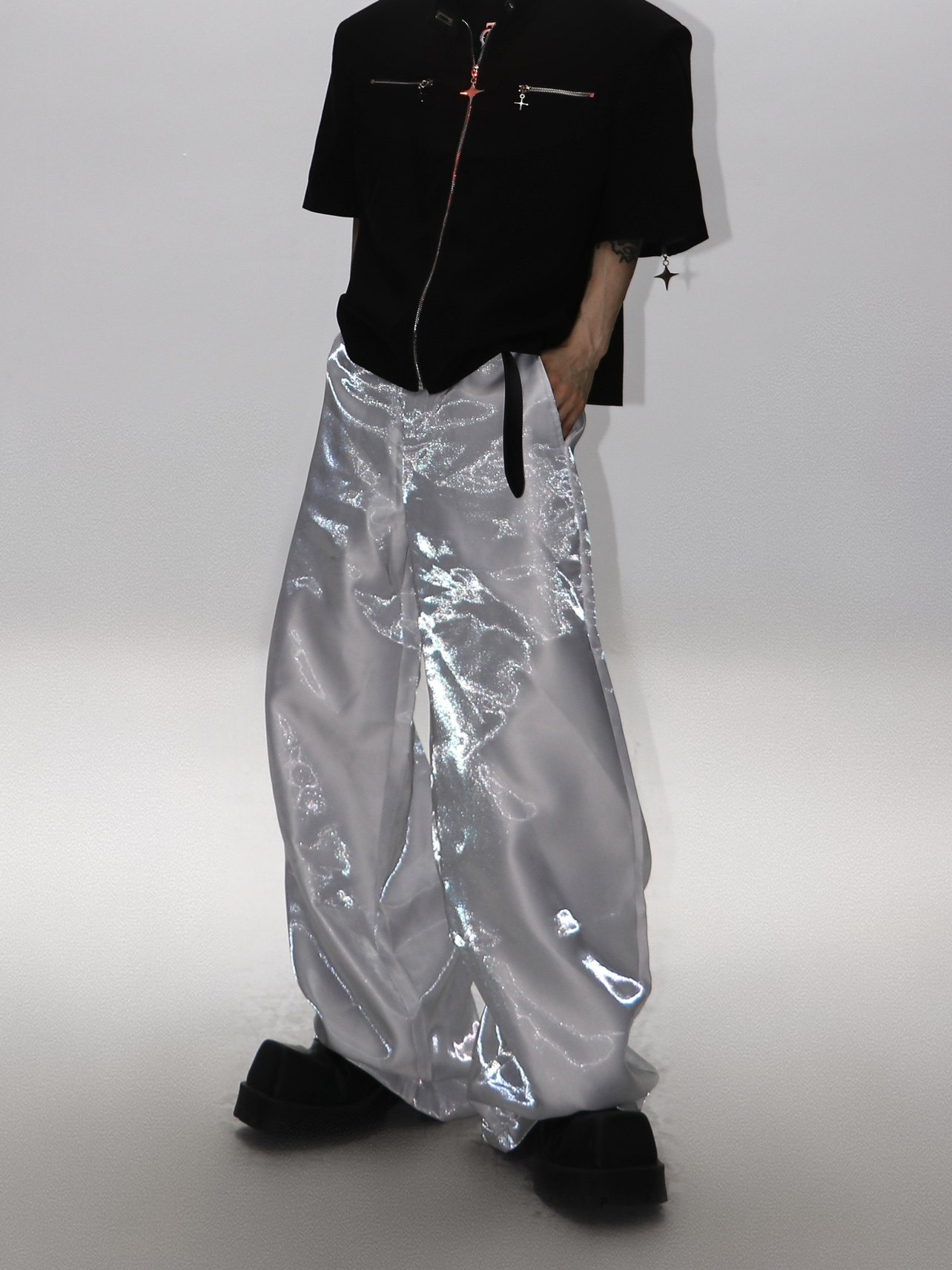 CulturE夏季小众先锋感液态高级光感垂感西裤宽松长裤直筒裤男