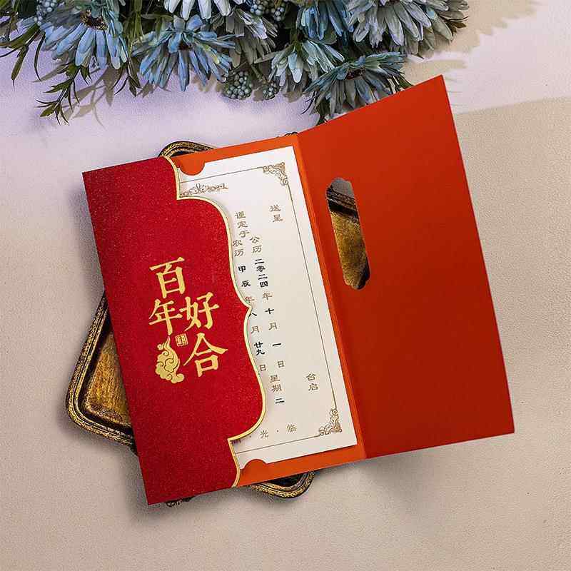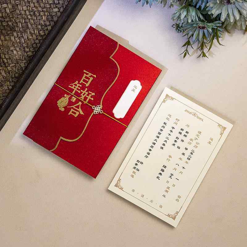 结婚新请柬婚礼创意小众个性中式喜贴磨砂中国风请帖打印