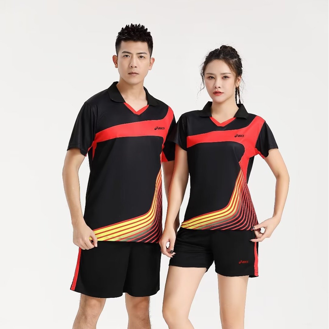 新款排球服套装男女夏翻领短袖透气速干气排球比赛运动服