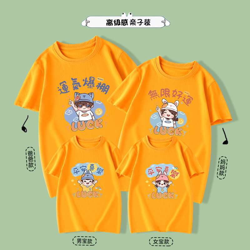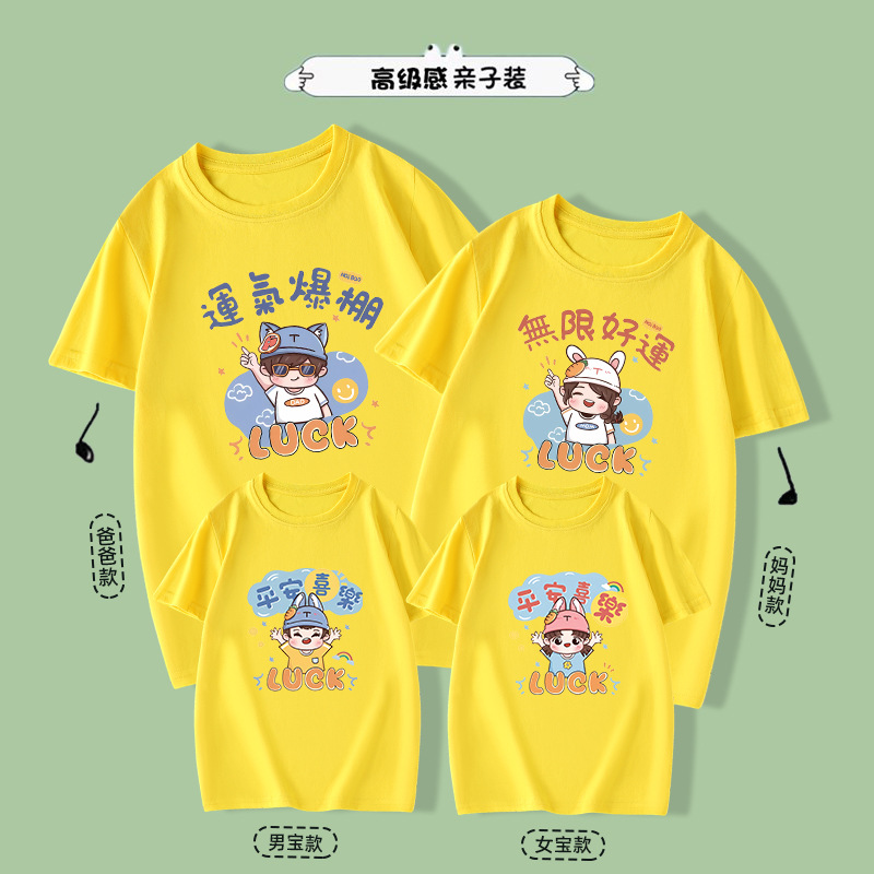 运气爆棚特别的亲子装短袖t恤夏季新款一家三四口男女款情侣服潮