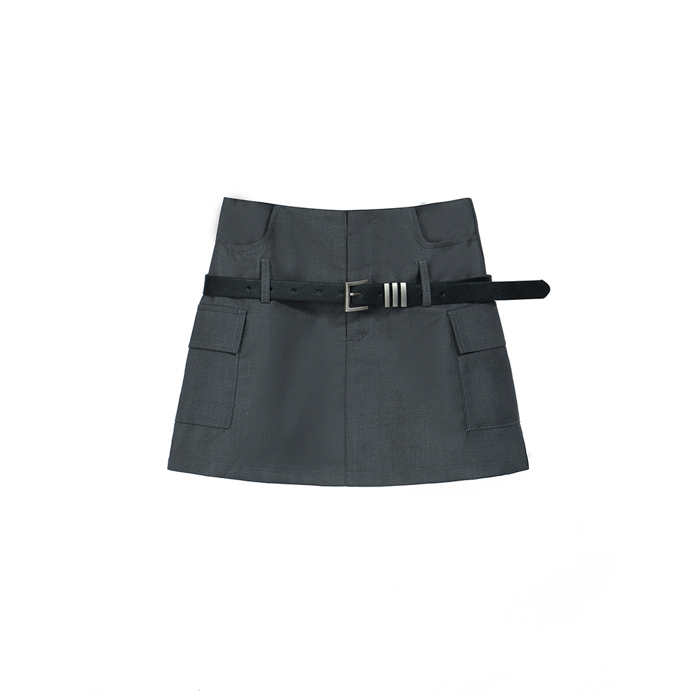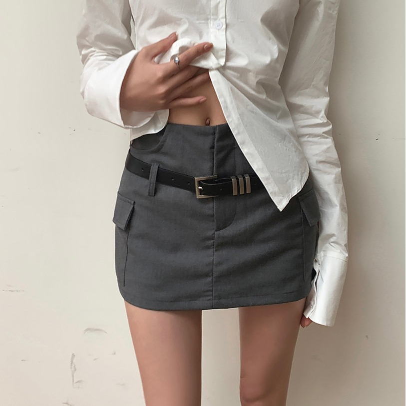 2025春夏新款灰色半身裙女设计感辣妹显瘦包臀短裙腰带