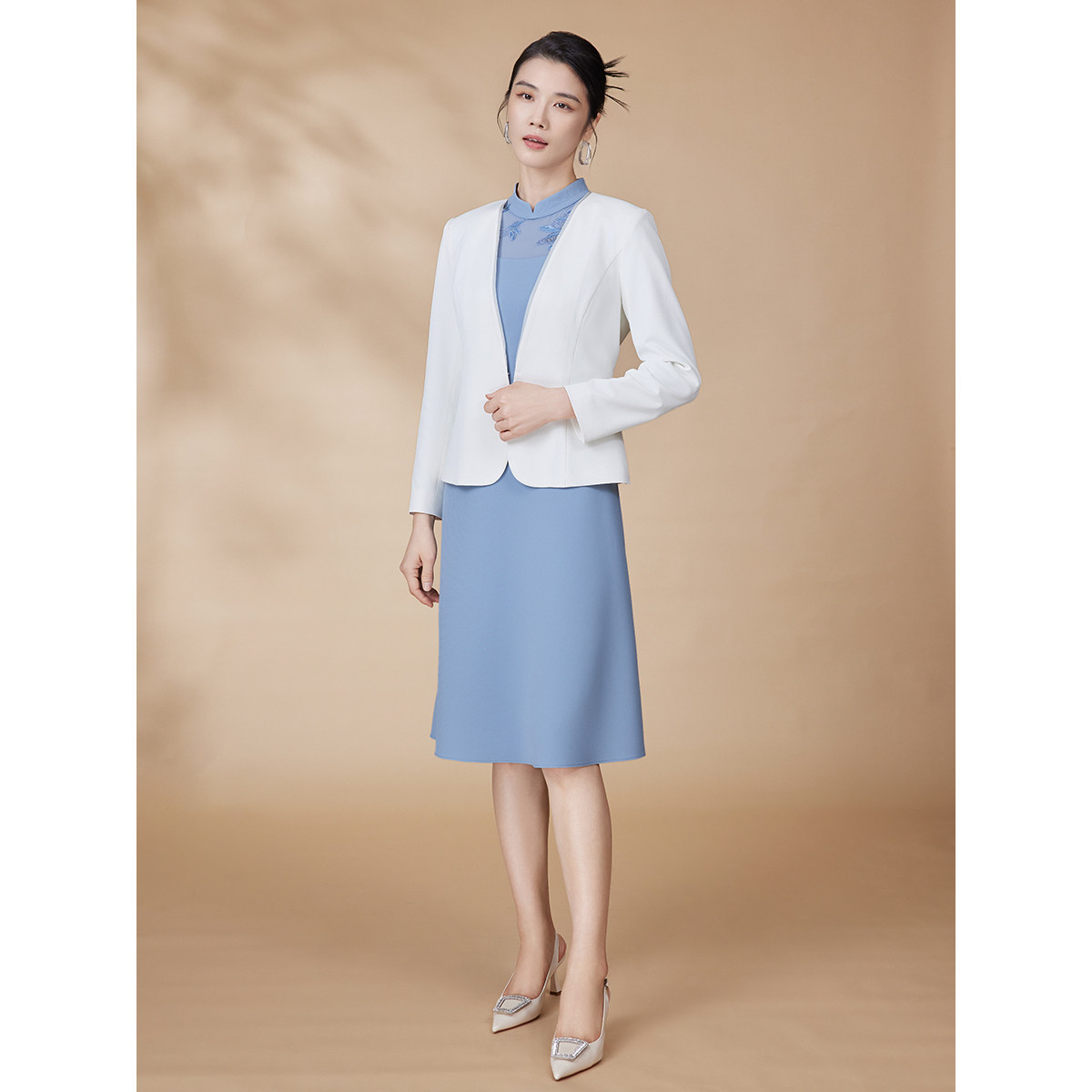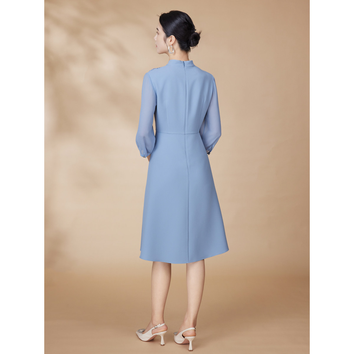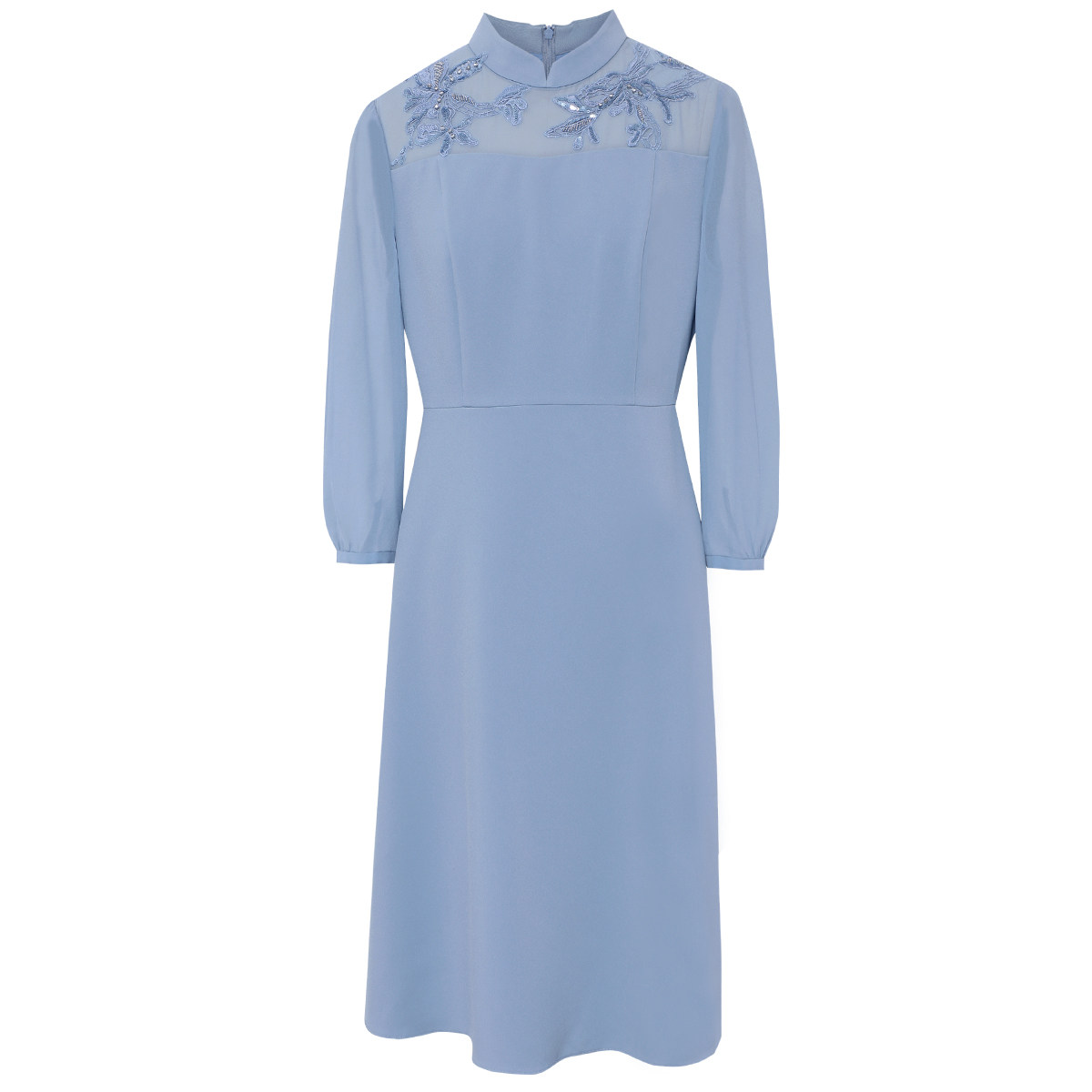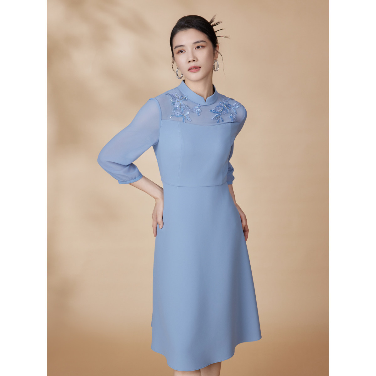 【新中式绣花裙】粉蓝衣橱2025秋装改良式旗袍立领网纱拼接连衣裙