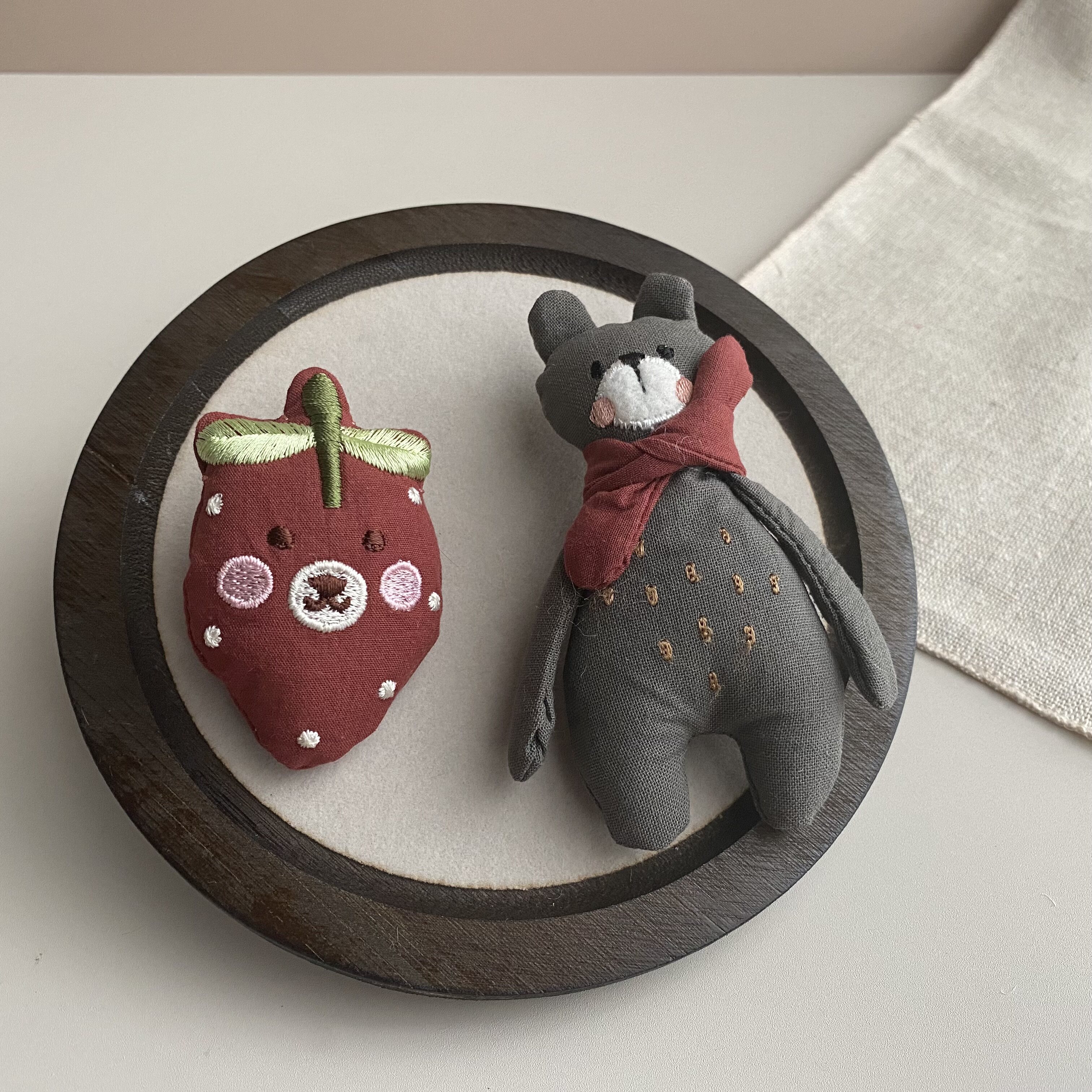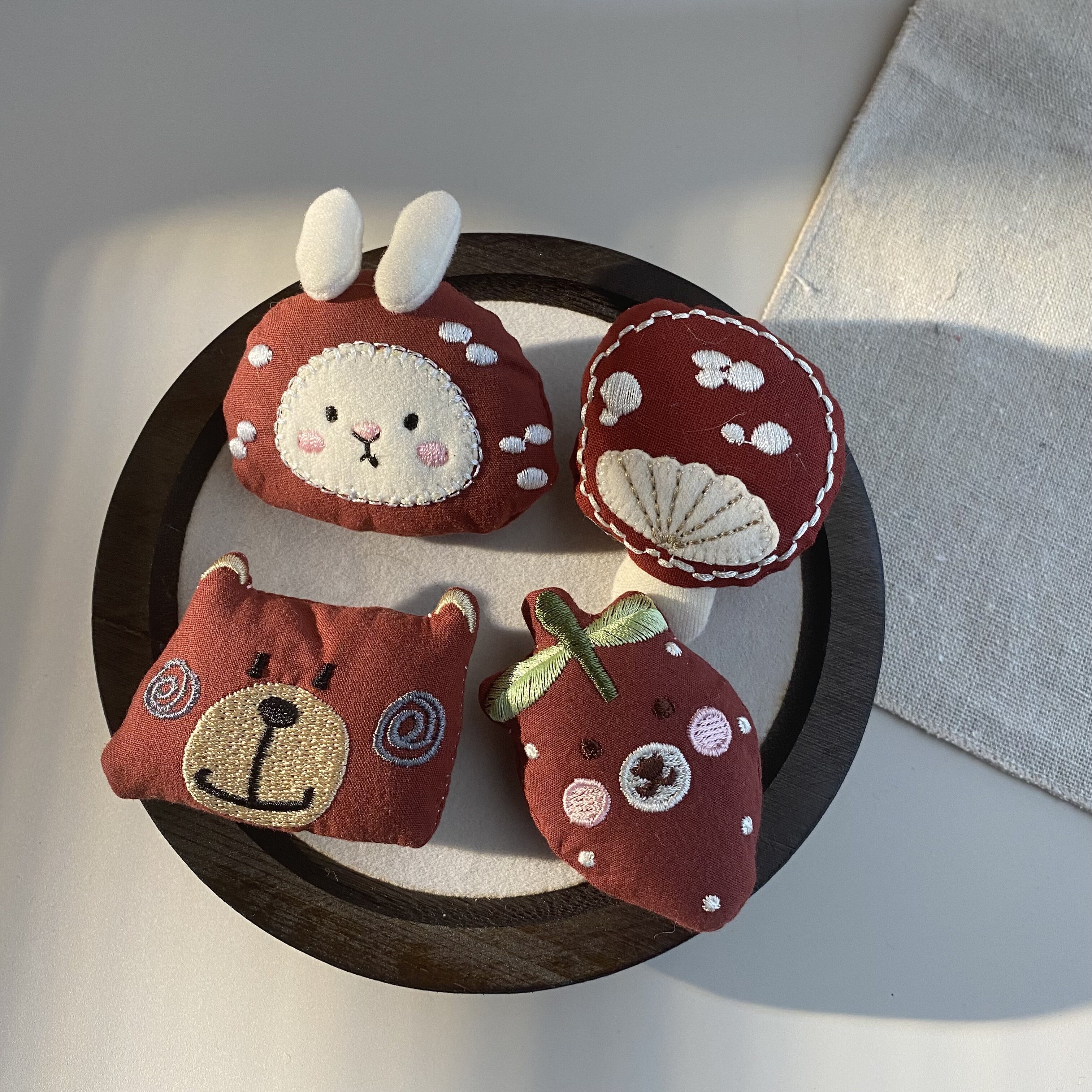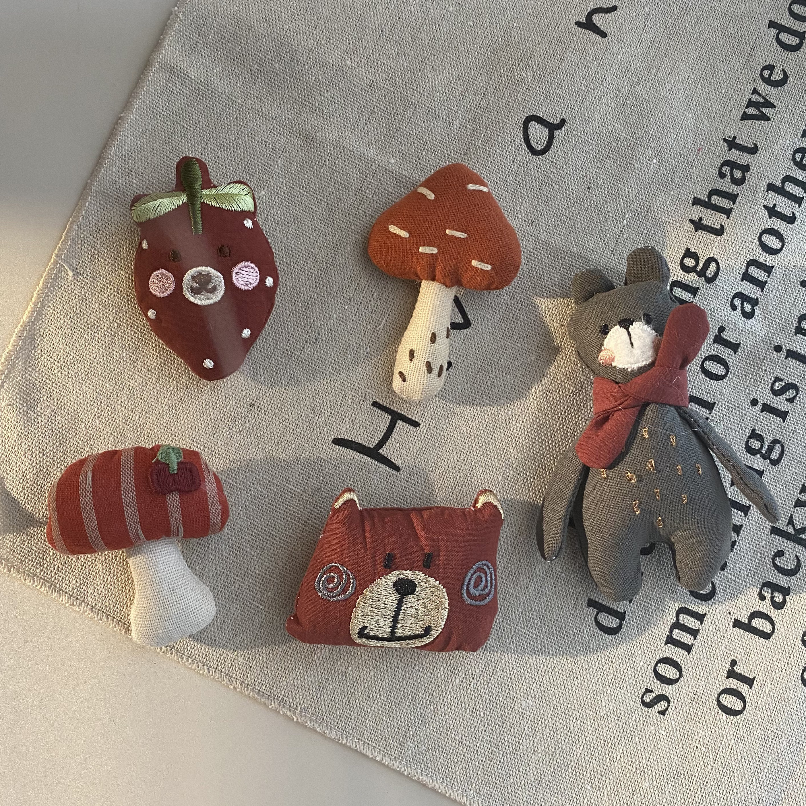 红色玩偶可爱卡通蘑菇小熊花朵胸针布艺动物公仔可拆卸鞋带扣配饰