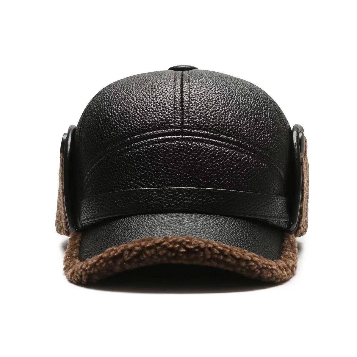 皮帽子新款中老年爸爸冬季保暖帽男款加厚护耳鸭舌帽黑色棒球棉帽