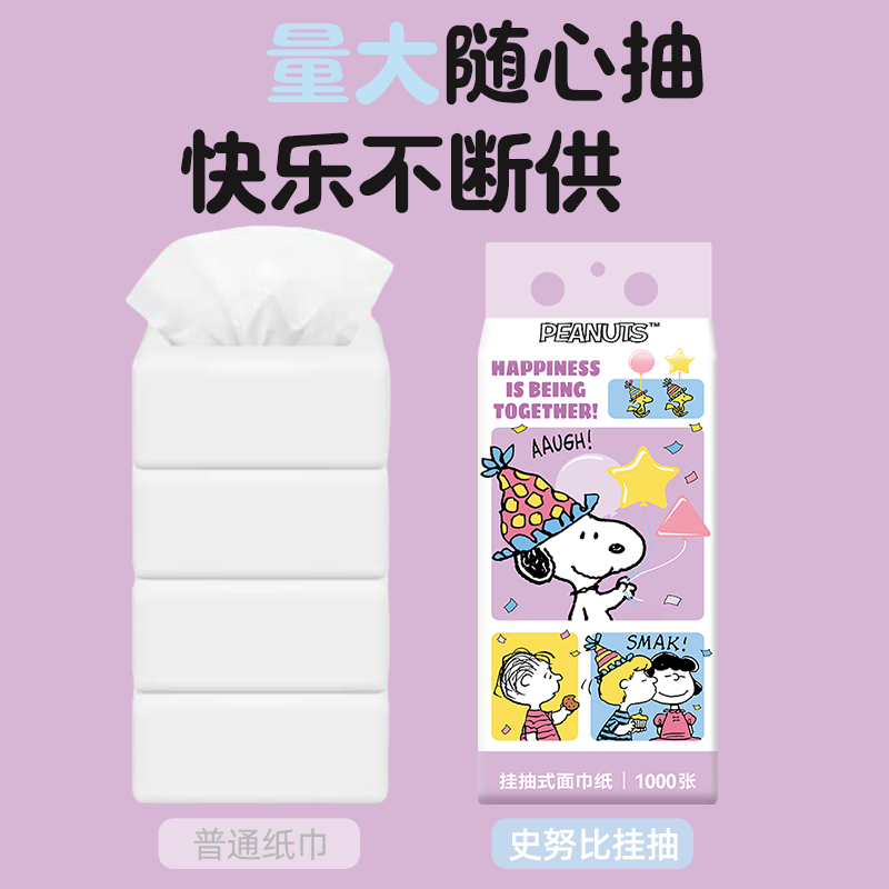 史努比抽纸悬挂式卫生纸家用实惠装纸巾纸抽整箱餐巾纸大包厕纸巾