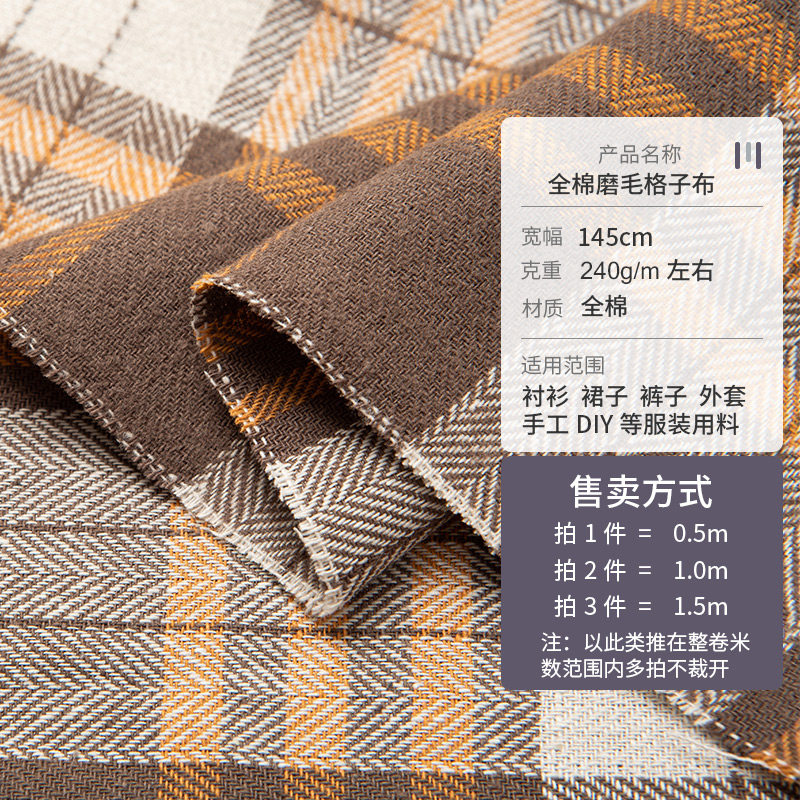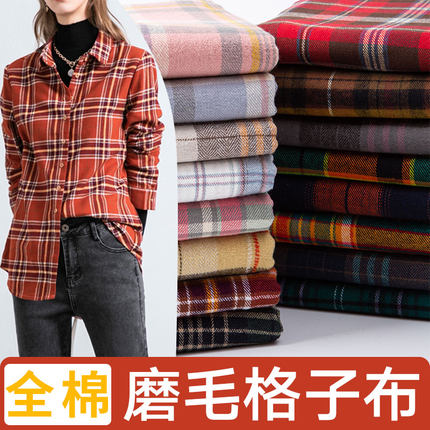 纯棉格子布料全棉磨毛衬衫裙子服装清仓处理diy手工衣服高档面料
