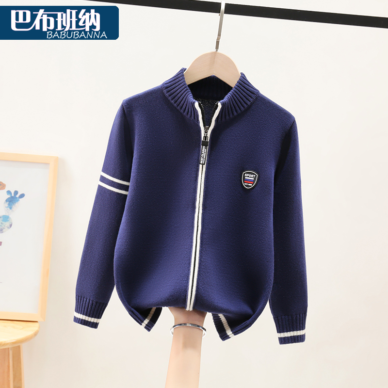 男童毛衣外套儿童拉链开衫加绒加厚秋冬2021新款中大童针织衫男孩